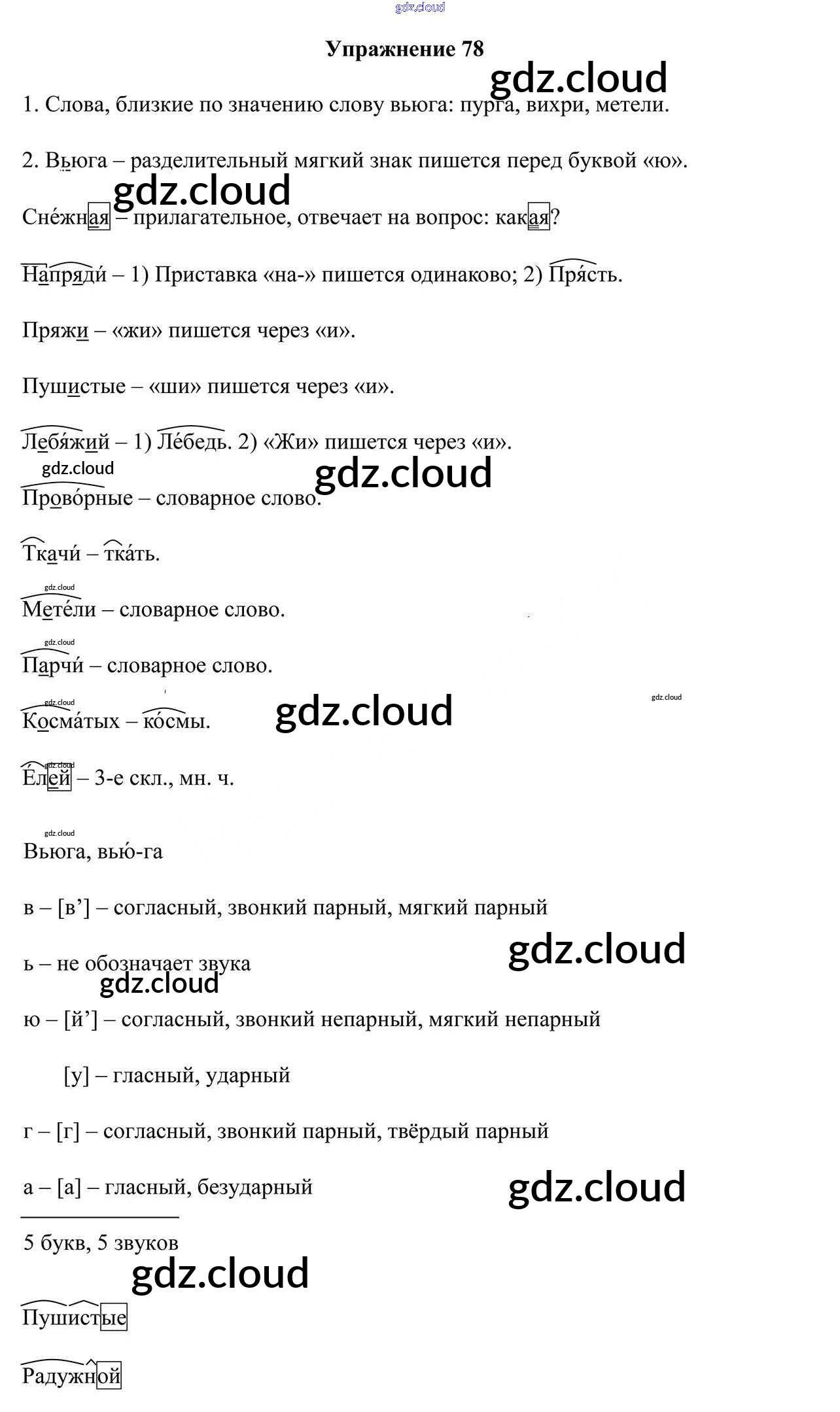 Ответ на задание 78 Учебник Русский язык за 5 (пятый) класс Мурина, Игнатович, Жадейко 2014 Часть 1, 2