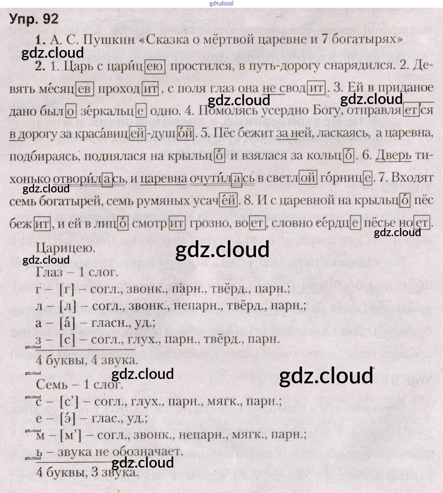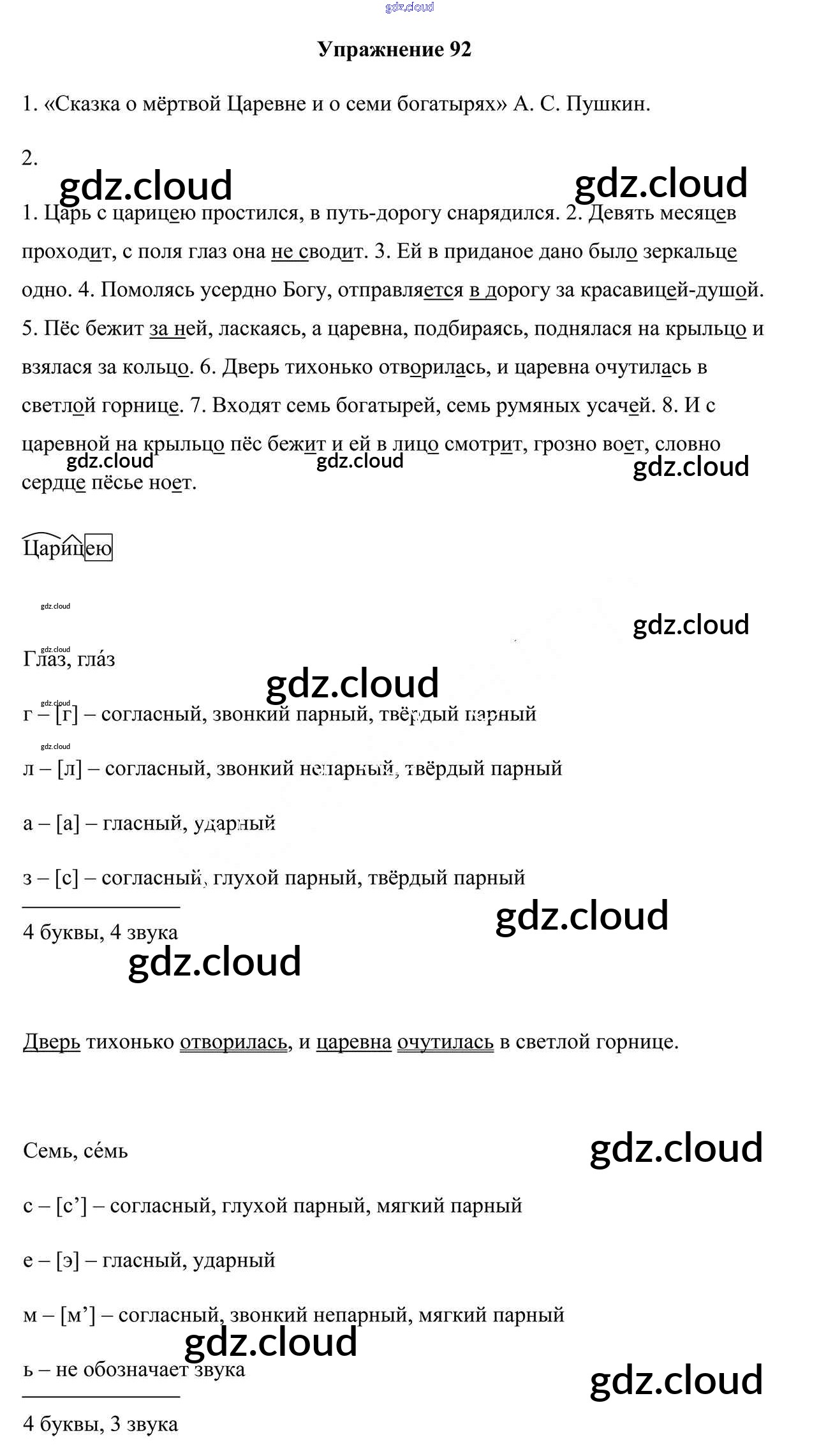 Ответ на задание 92 Учебник Русский язык за 5 (пятый) класс Мурина, Игнатович, Жадейко 2014 Часть 1, 2