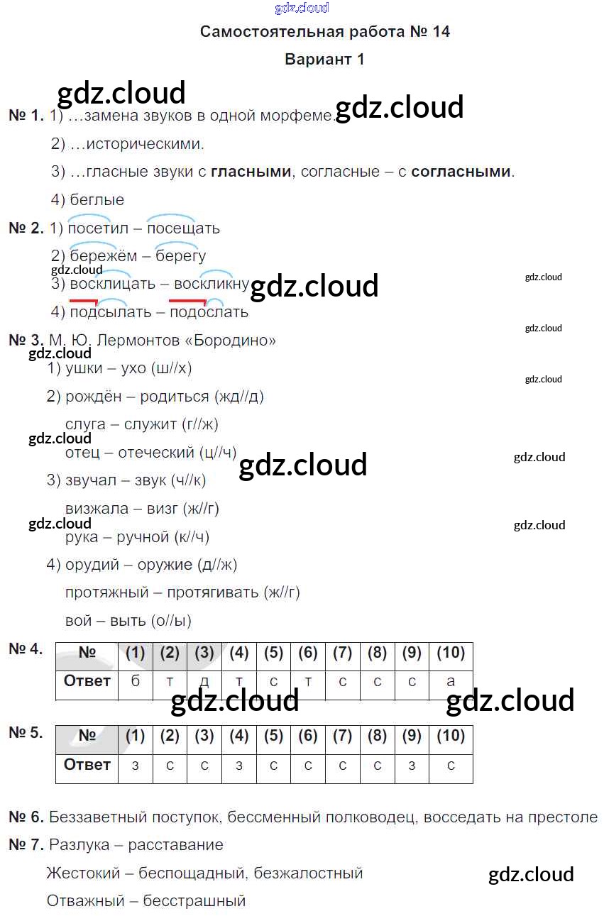 СР-14 Ответы к самостоятельным работам по Русскому языку 5 класс Рабочая тетрадь Гулеватая Национальное образование