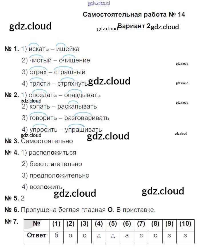 СР-14 Ответы к самостоятельным работам по Русскому языку 5 класс Рабочая тетрадь Гулеватая Национальное образование
