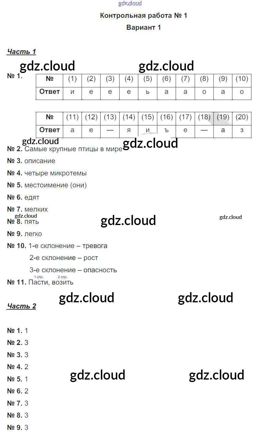 КР-1. Варианты Ответы к контрольным работам по Русскому языку 5 класс Рабочая тетрадь Гулеватая Национальное образование