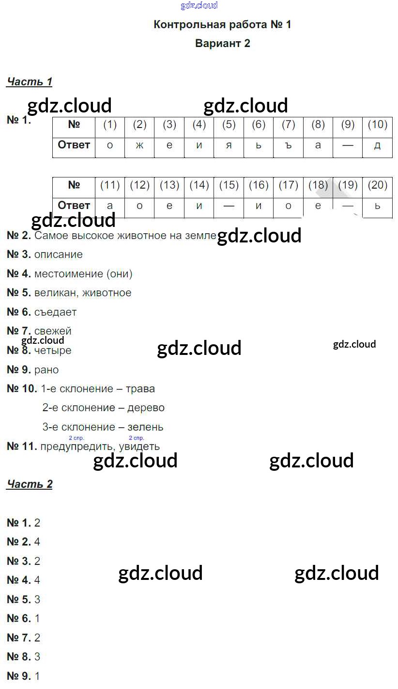 КР-1. Варианты Ответы к контрольным работам по Русскому языку 5 класс Рабочая тетрадь Гулеватая Национальное образование