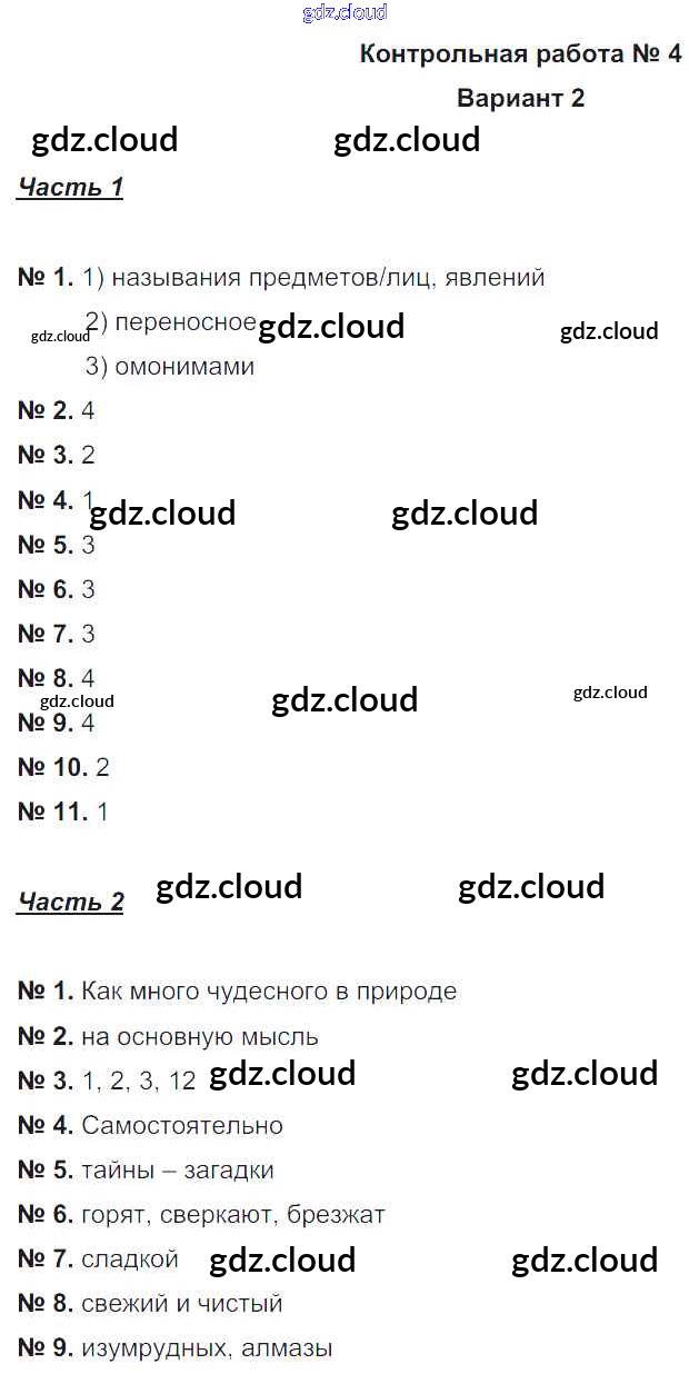 КР-4. Варианты Ответы к контрольным работам по Русскому языку 5 класс Рабочая тетрадь Гулеватая Национальное образование