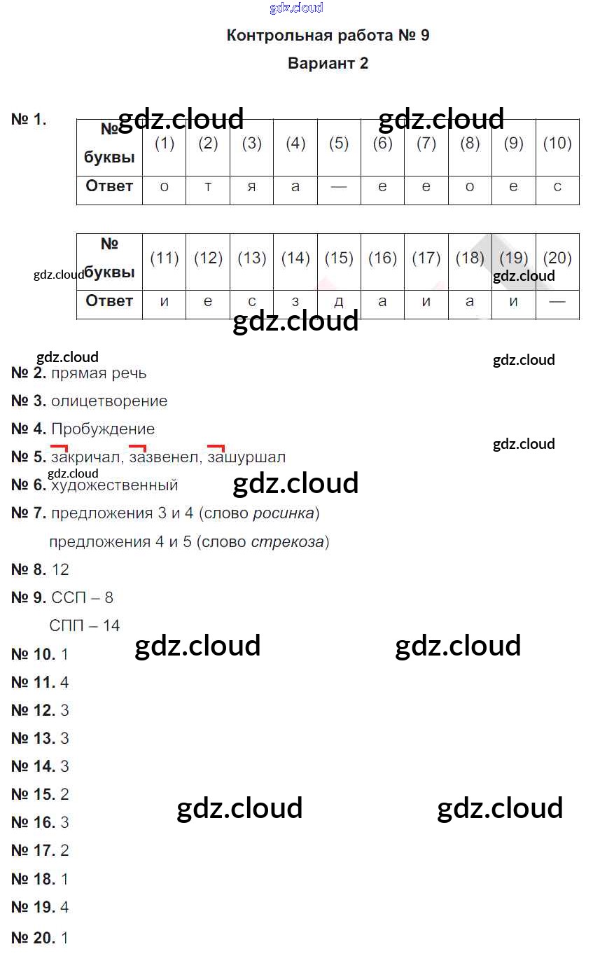 КР-9. Варианты Ответы к контрольным работам по Русскому языку 5 класс Рабочая тетрадь Гулеватая Национальное образование