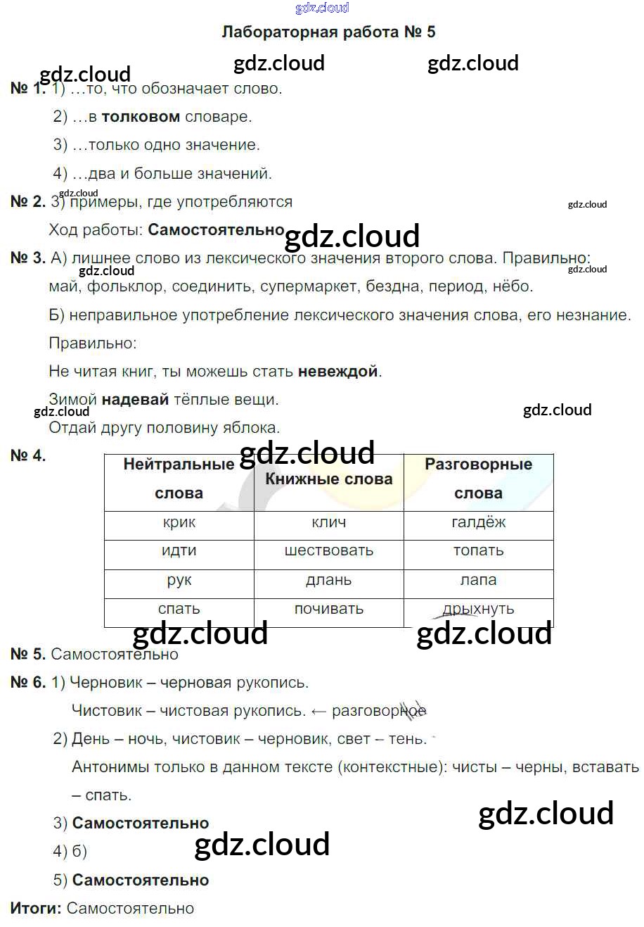 5 Ответы к лабораторным работам по Русскому языку 5 класс Рабочая тетрадь Гулеватая Национальное образование