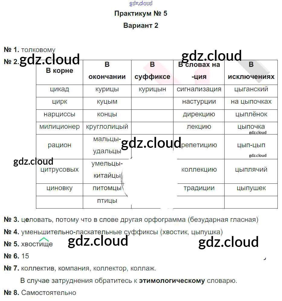 5 Ответы к практикуму по Русскому языку 5 класс Рабочая тетрадь Гулеватая Национальное образование
