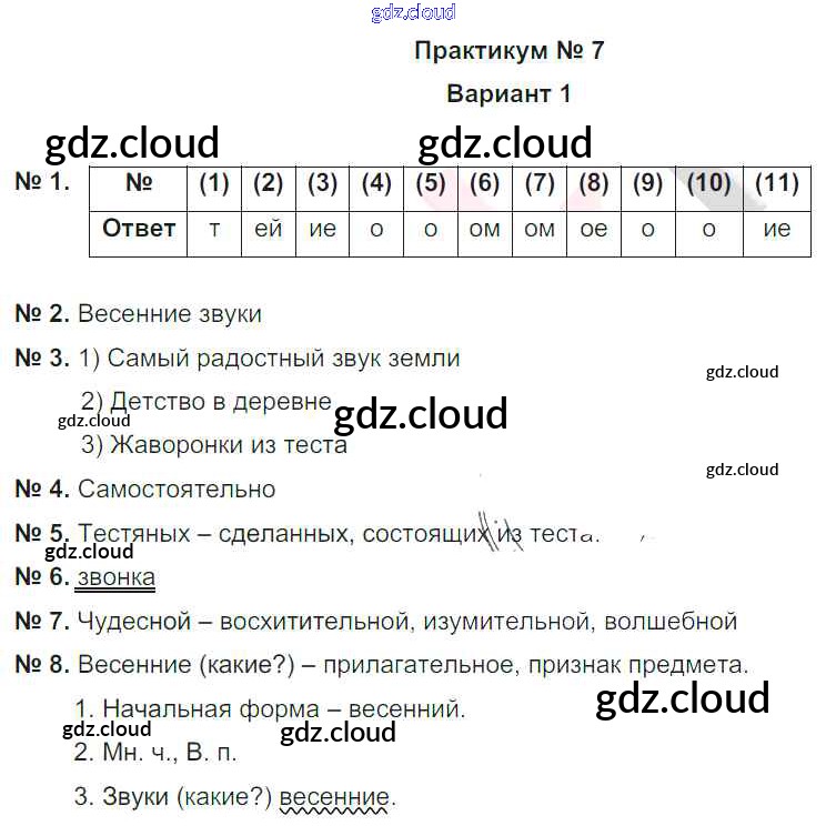 7 Ответы к практикуму по Русскому языку 5 класс Рабочая тетрадь Гулеватая Национальное образование