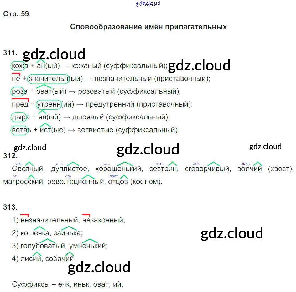Ответ на задание 59 Рабочая тетрадь Русский язык за 5 (пятый) класс Львов УМК 2016 Часть 1, 2