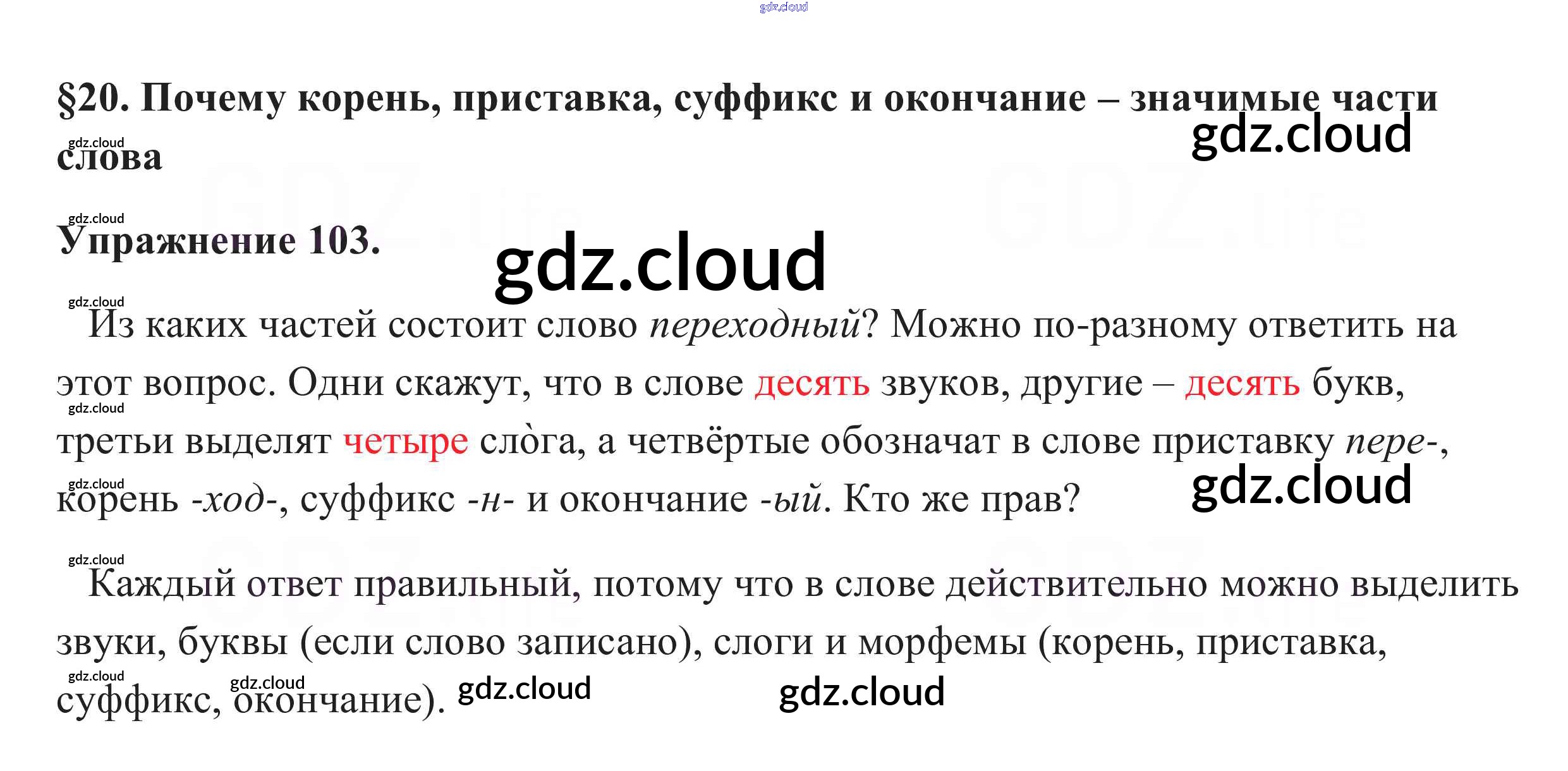 Ответ на задание 103 Учебник Русский язык за 5 (пятый) класс Разумовская, Львова, Капинос, Львов, Богданова, Тронина, Сергеева 2014