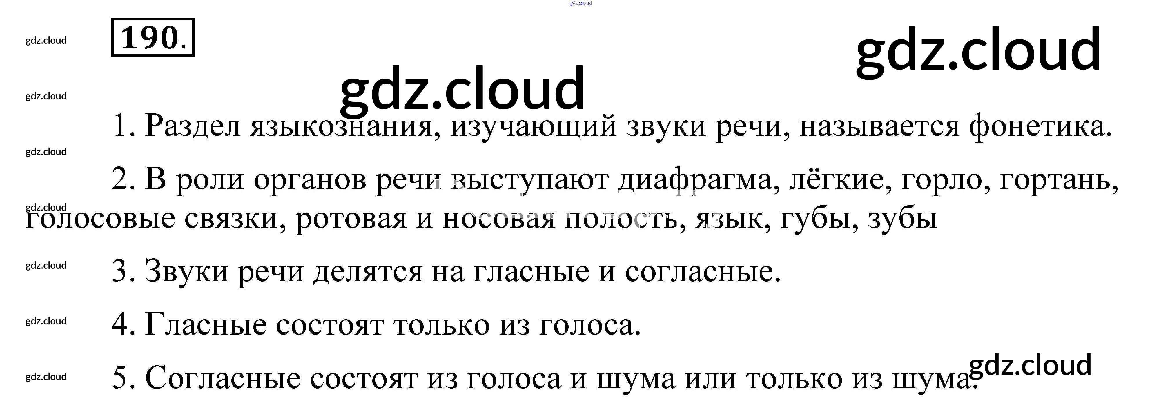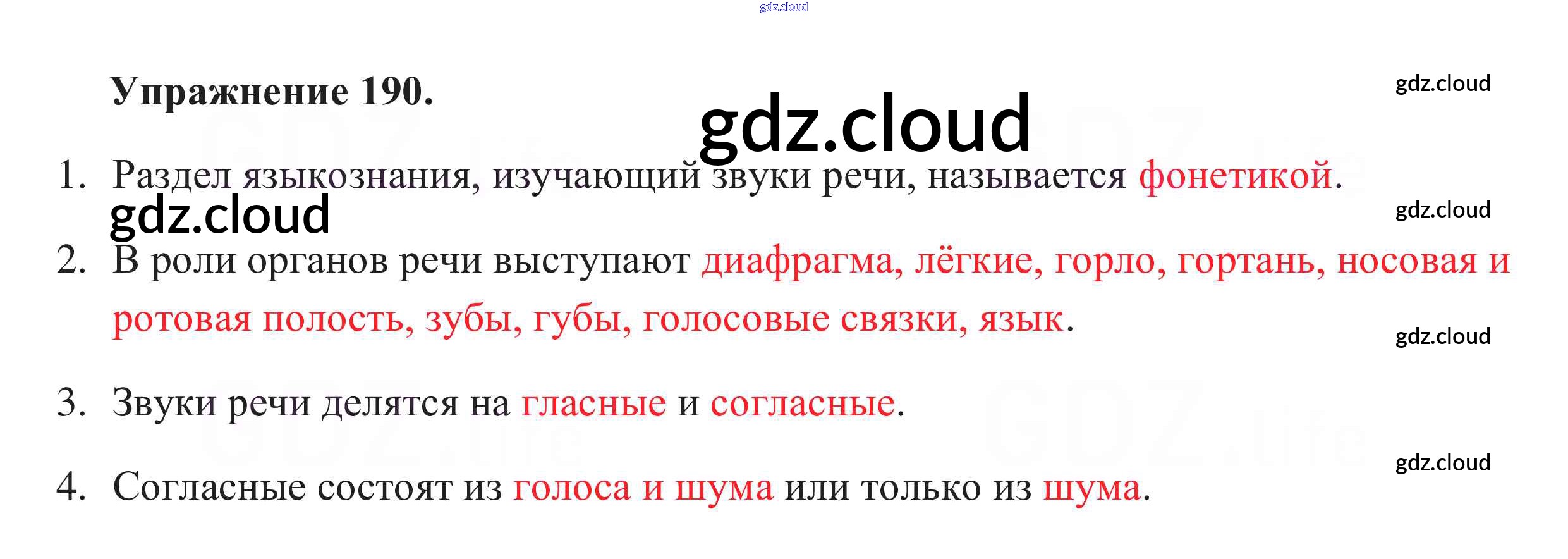 Ответ на задание 190 Учебник Русский язык за 5 (пятый) класс Разумовская, Львова, Капинос, Львов, Богданова, Тронина, Сергеева 2014