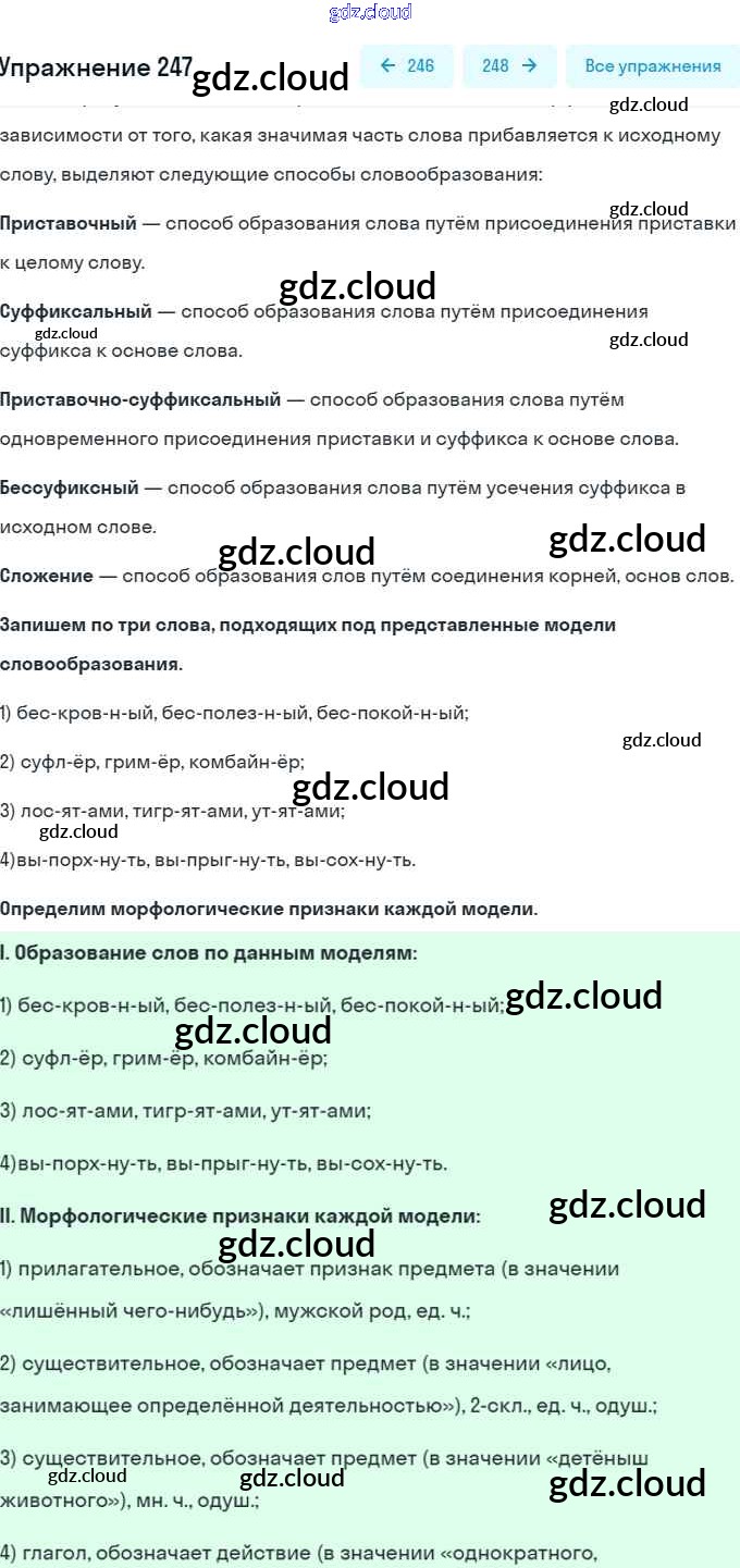 Ответ на задание 247 Учебник Русский язык за 5 (пятый) класс Разумовская, Львова, Капинос, Львов, Богданова, Тронина, Сергеева 2014