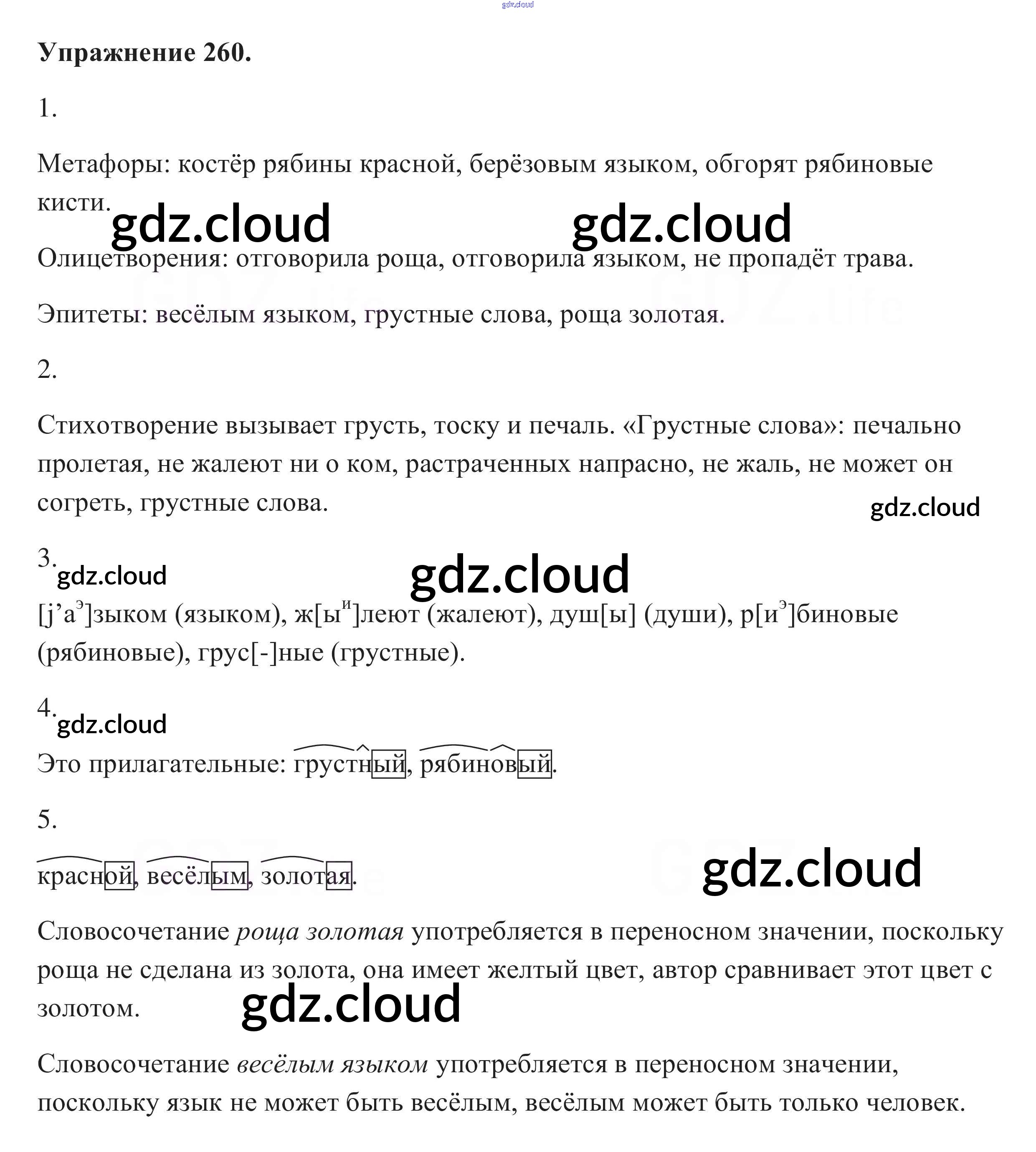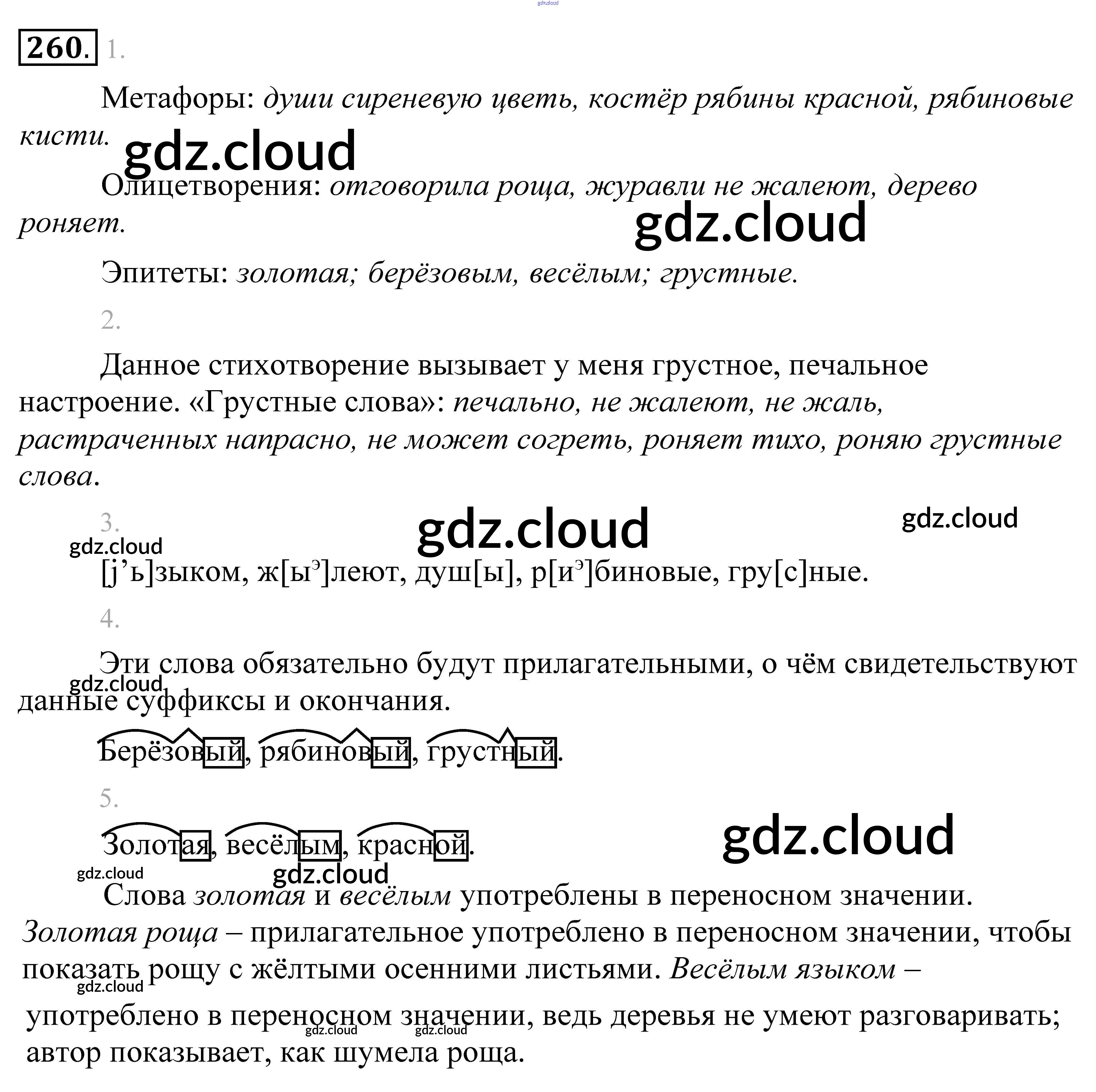 Ответ на задание 260 Учебник Русский язык за 5 (пятый) класс Разумовская, Львова, Капинос, Львов, Богданова, Тронина, Сергеева 2014