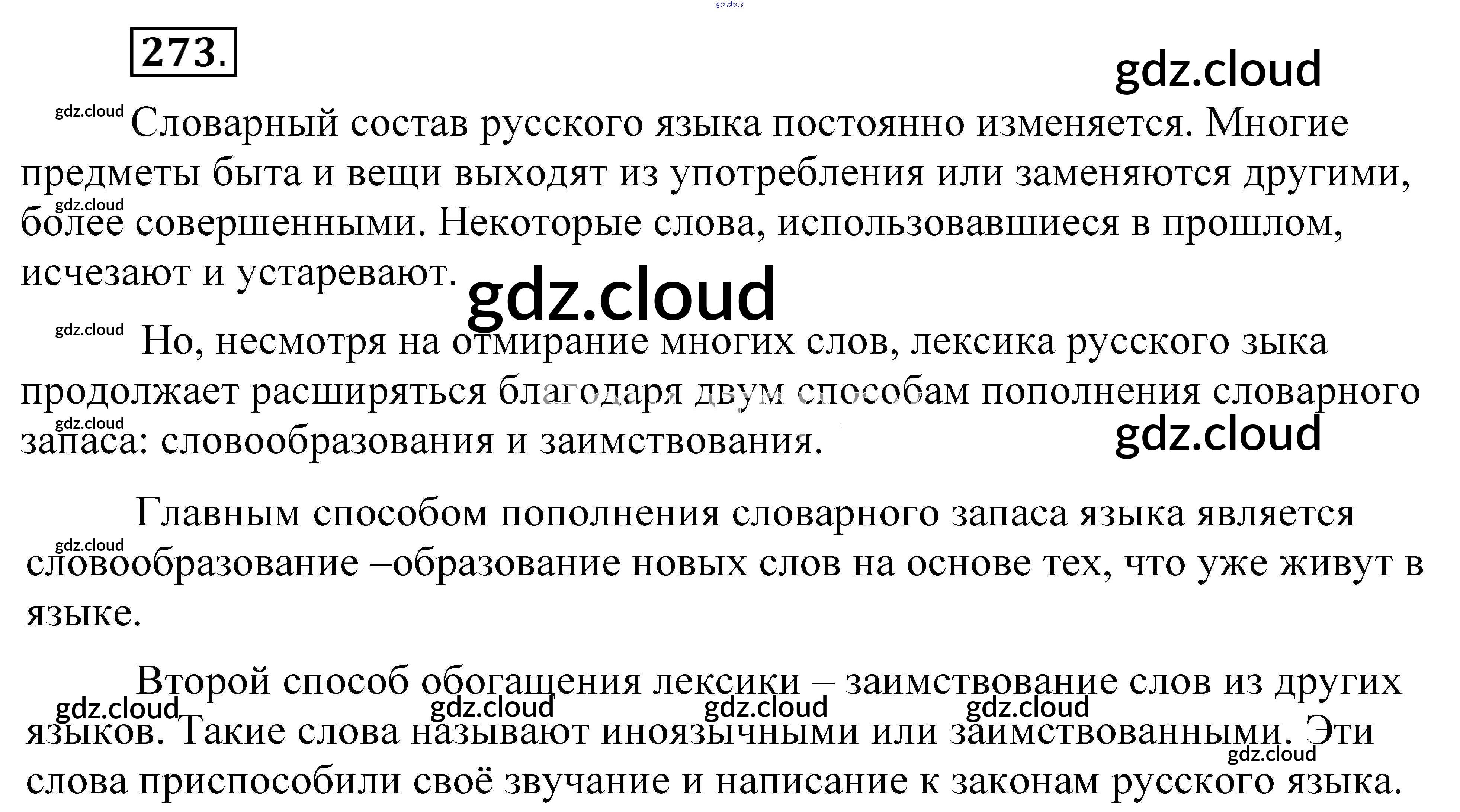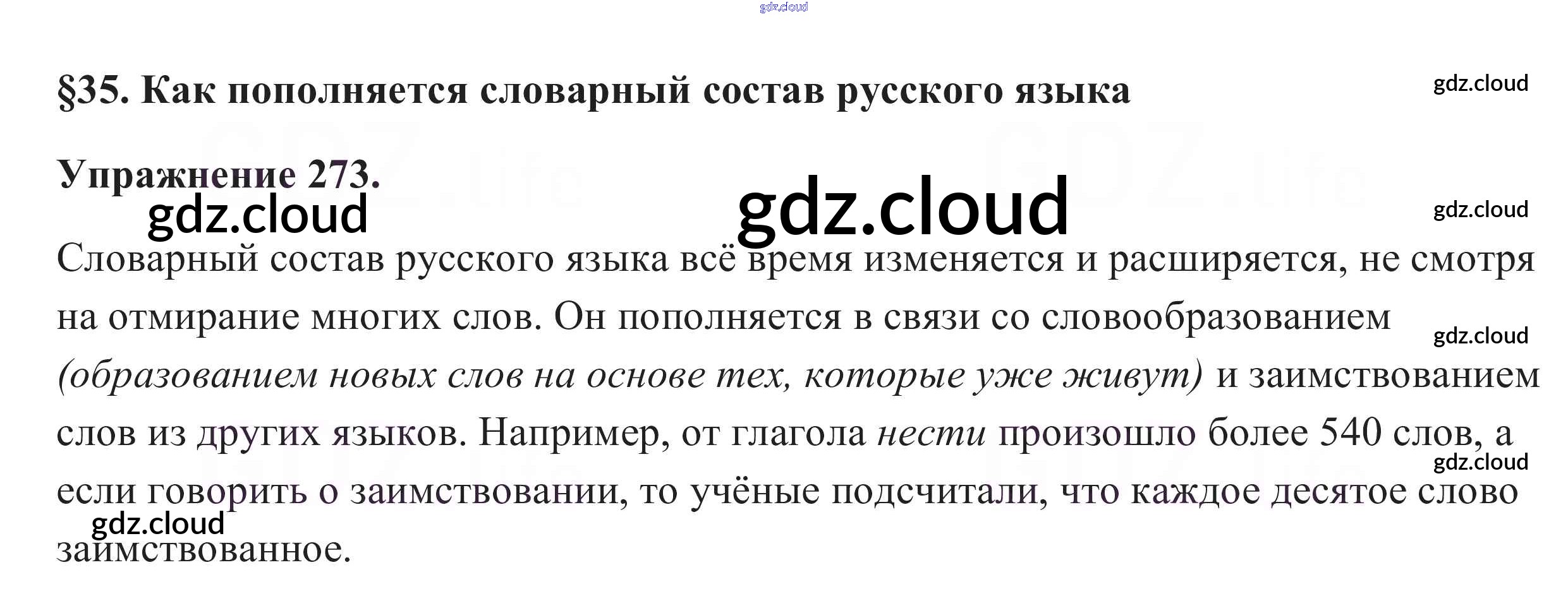 Ответ на задание 273 Учебник Русский язык за 5 (пятый) класс Разумовская, Львова, Капинос, Львов, Богданова, Тронина, Сергеева 2014
