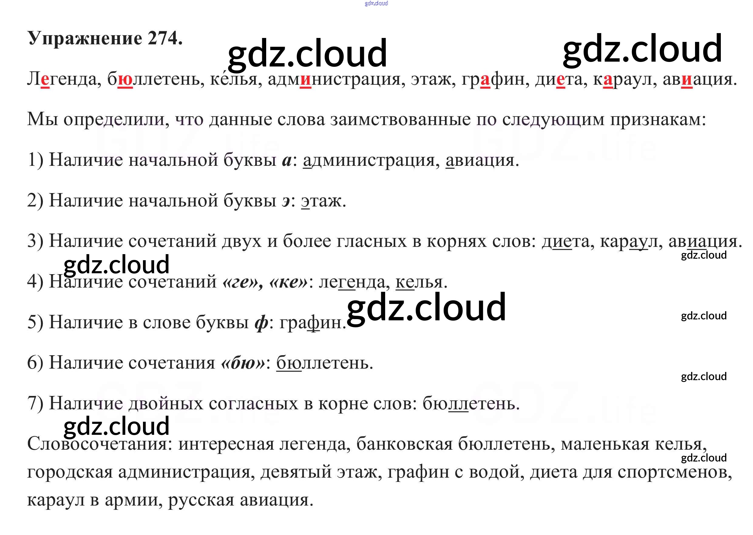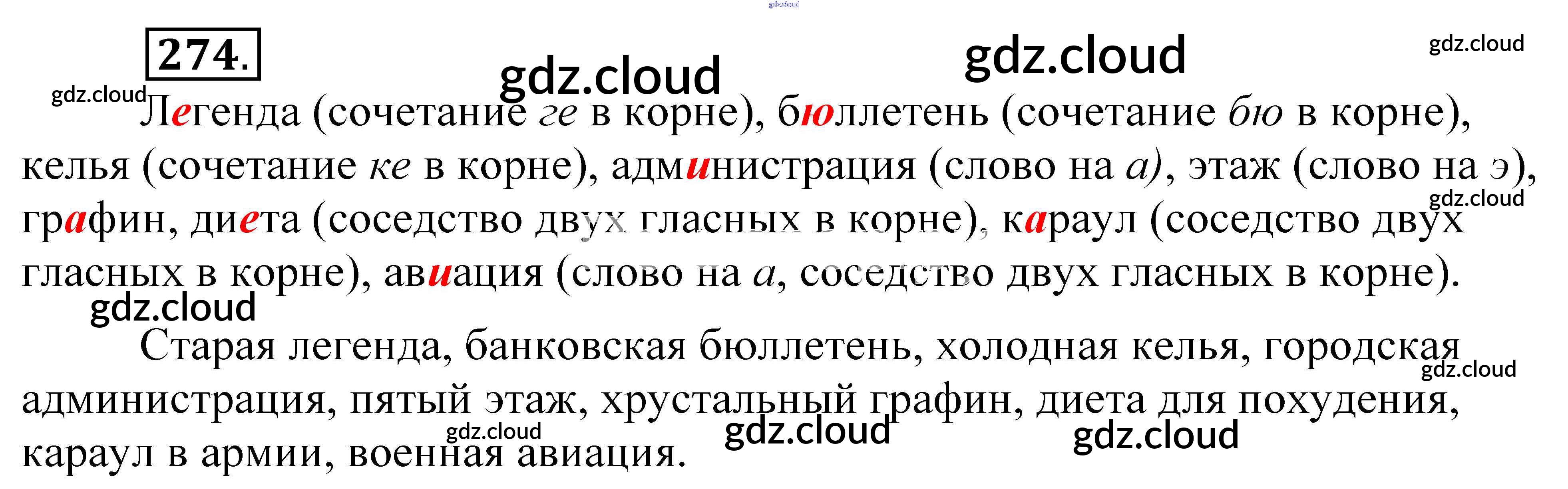 Ответ на задание 274 Учебник Русский язык за 5 (пятый) класс Разумовская, Львова, Капинос, Львов, Богданова, Тронина, Сергеева 2014