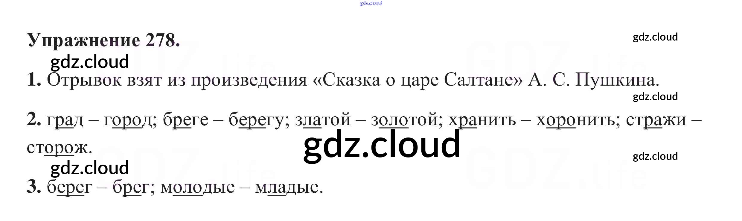 Ответ на задание 278 Учебник Русский язык за 5 (пятый) класс Разумовская, Львова, Капинос, Львов, Богданова, Тронина, Сергеева 2014