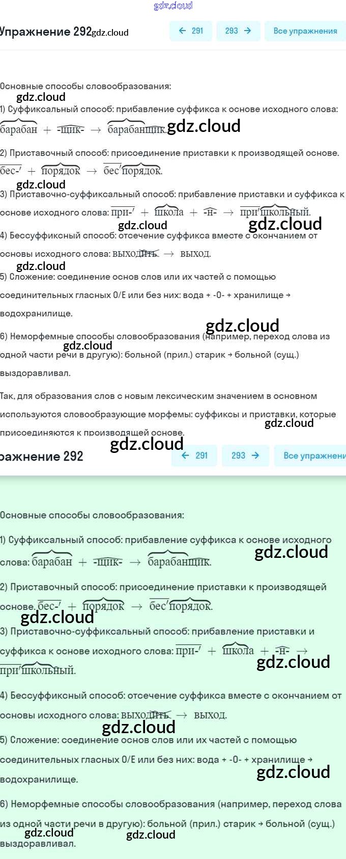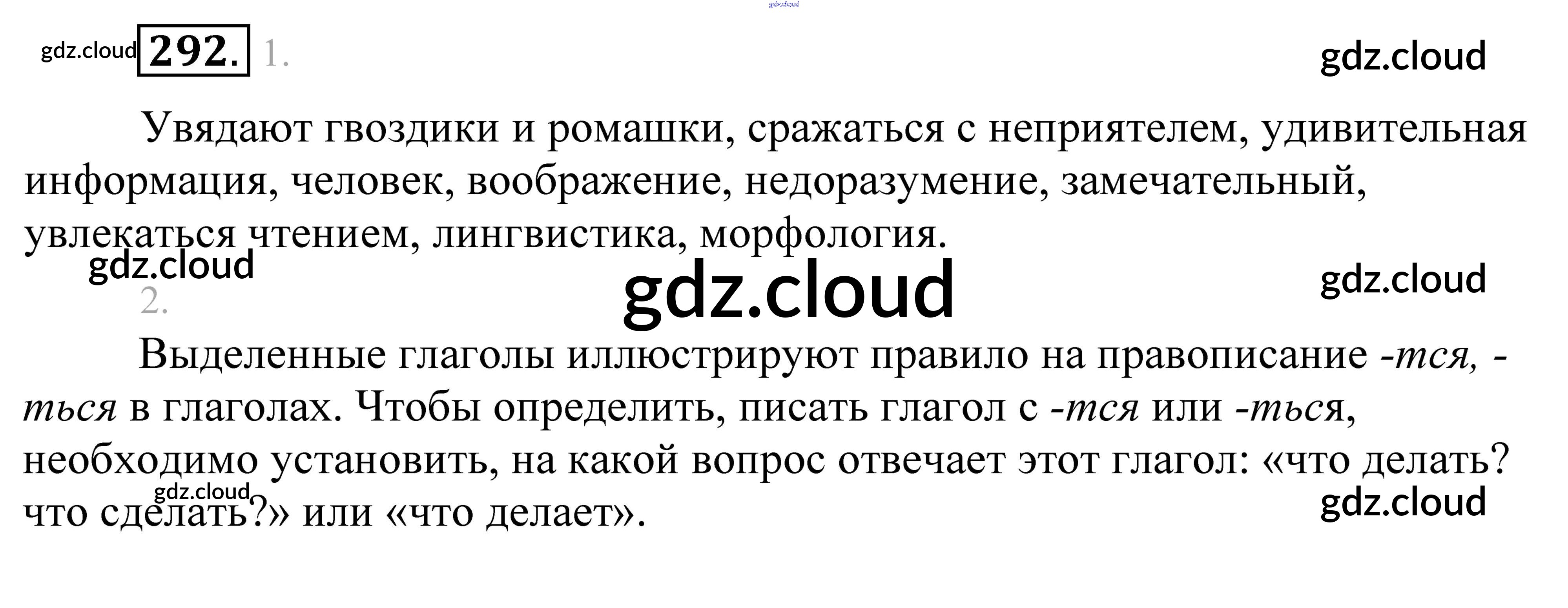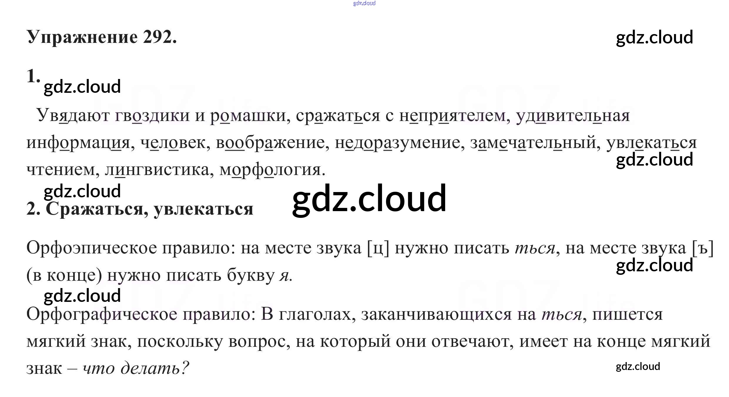 Ответ на задание 292 Учебник Русский язык за 5 (пятый) класс Разумовская, Львова, Капинос, Львов, Богданова, Тронина, Сергеева 2014