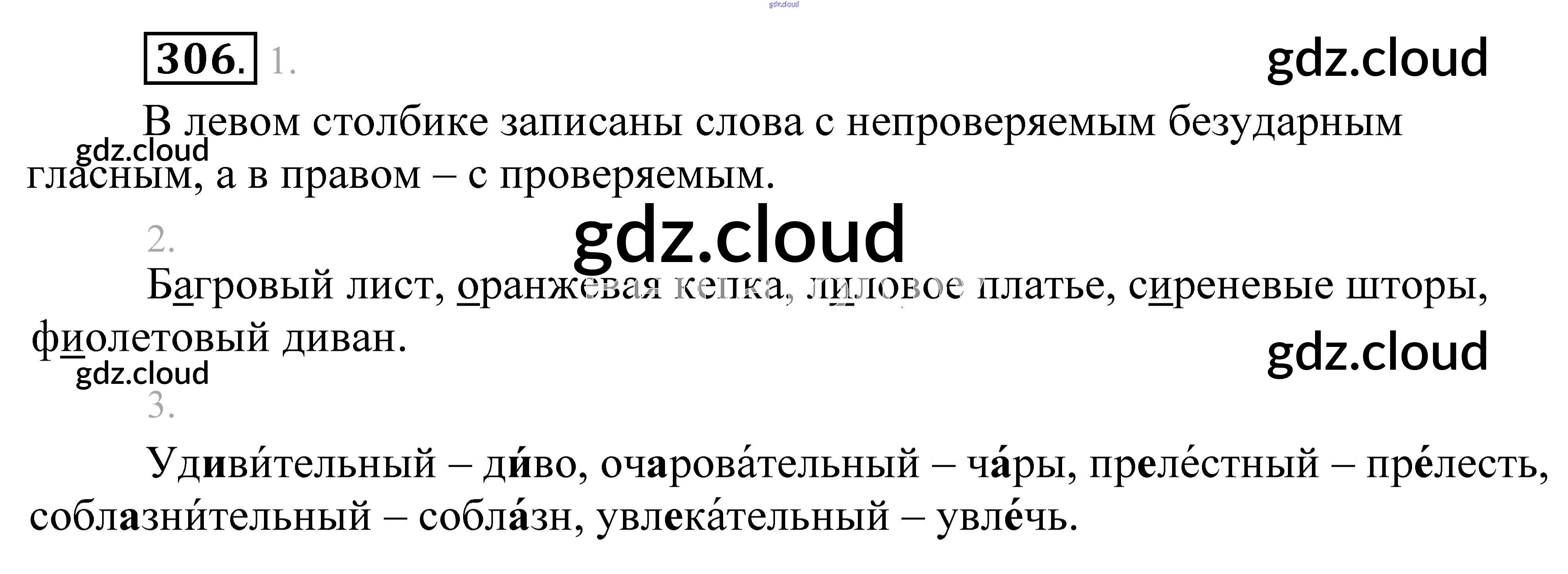 Ответ на задание 306 Учебник Русский язык за 5 (пятый) класс Разумовская, Львова, Капинос, Львов, Богданова, Тронина, Сергеева 2014