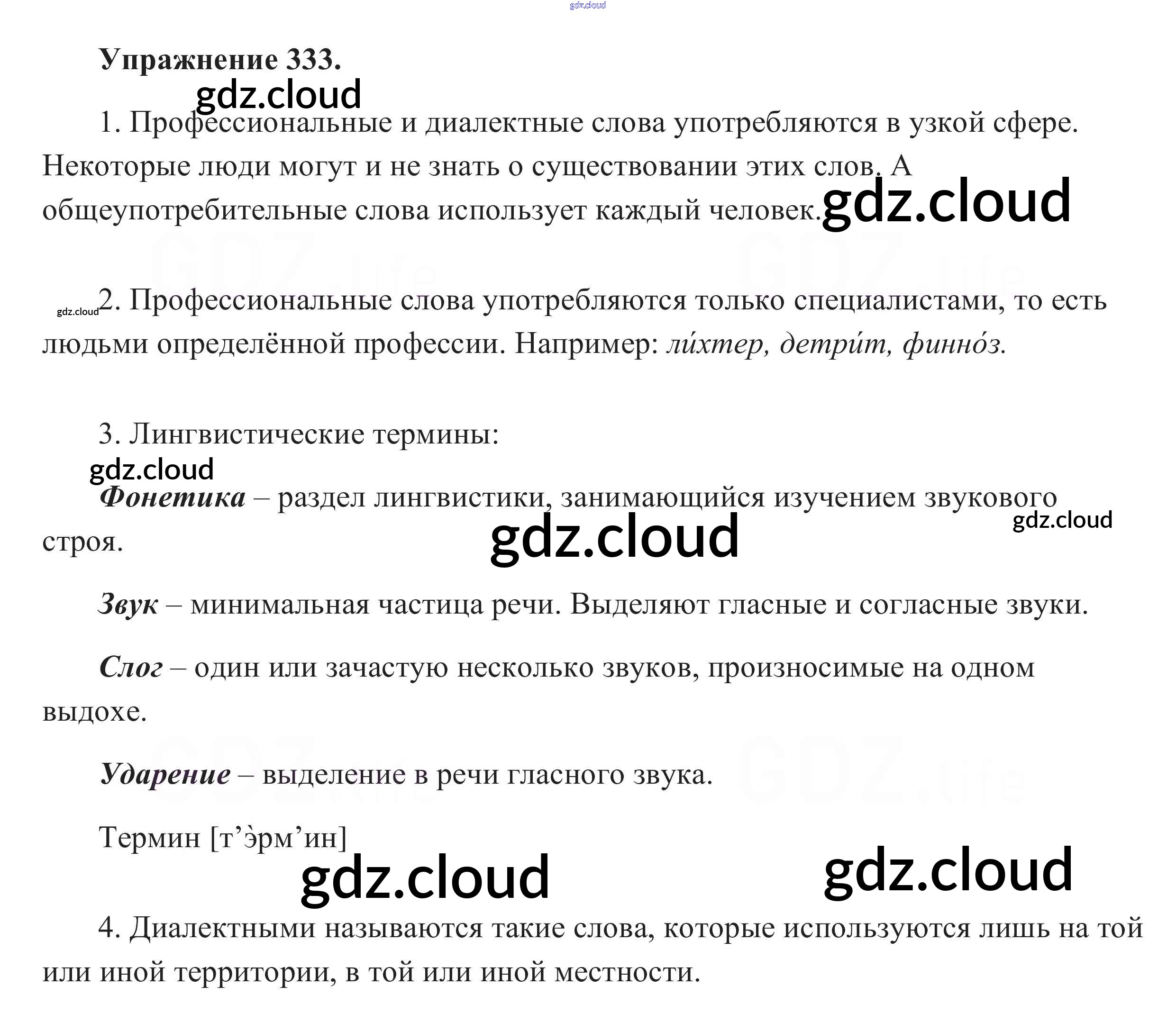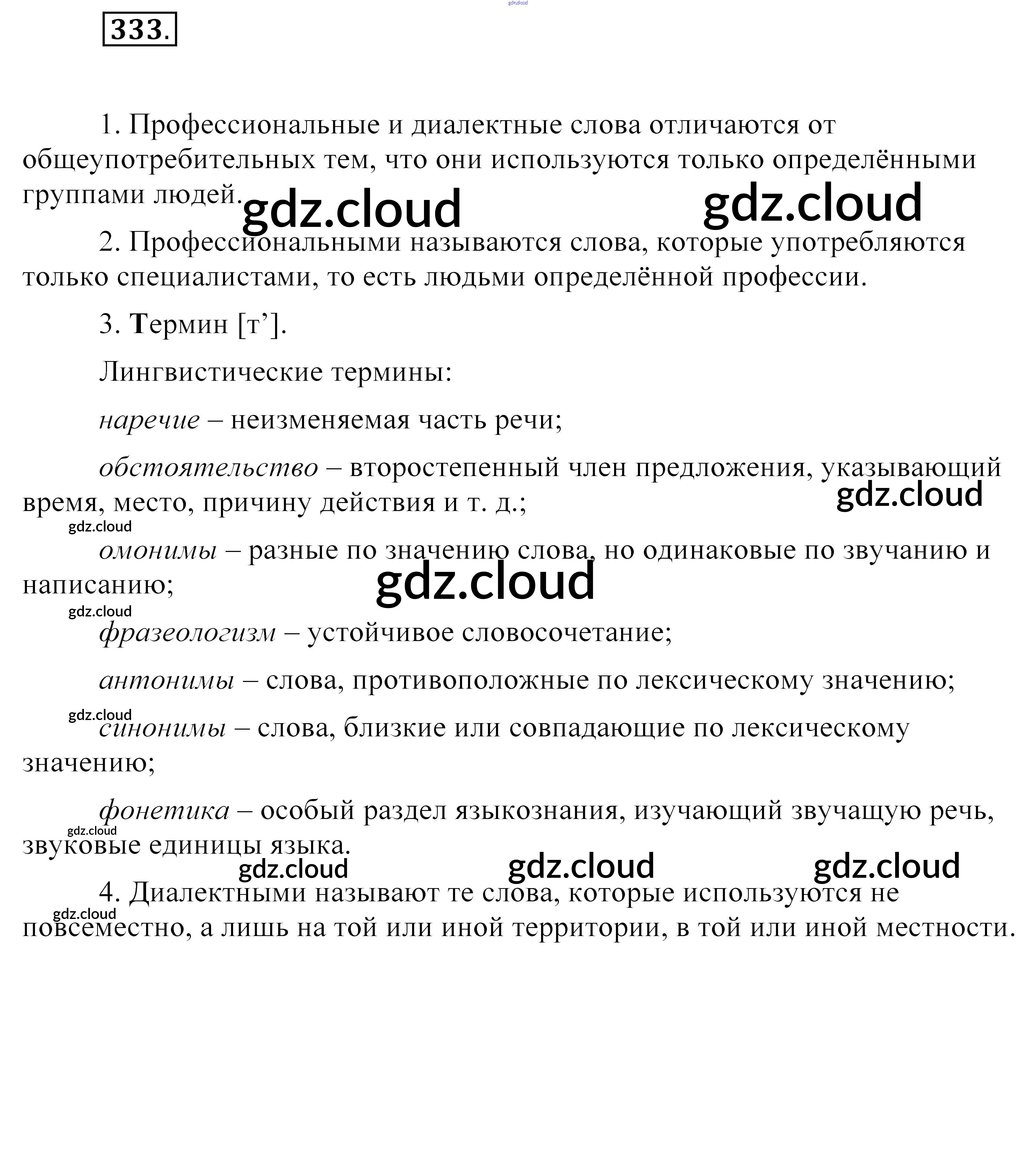Ответ на задание 333 Учебник Русский язык за 5 (пятый) класс Разумовская, Львова, Капинос, Львов, Богданова, Тронина, Сергеева 2014