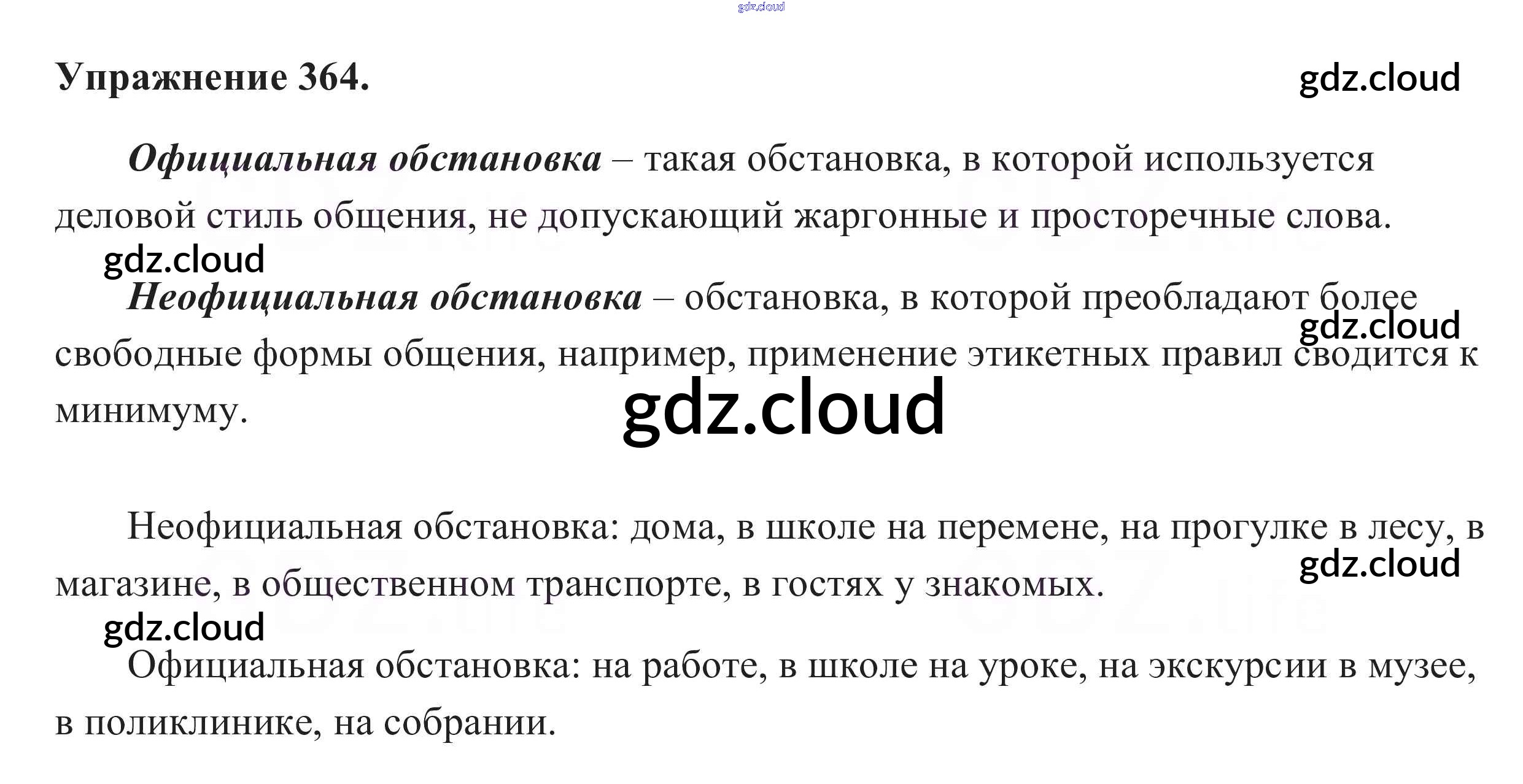 Ответ на задание 364 Учебник Русский язык за 5 (пятый) класс Разумовская, Львова, Капинос, Львов, Богданова, Тронина, Сергеева 2014