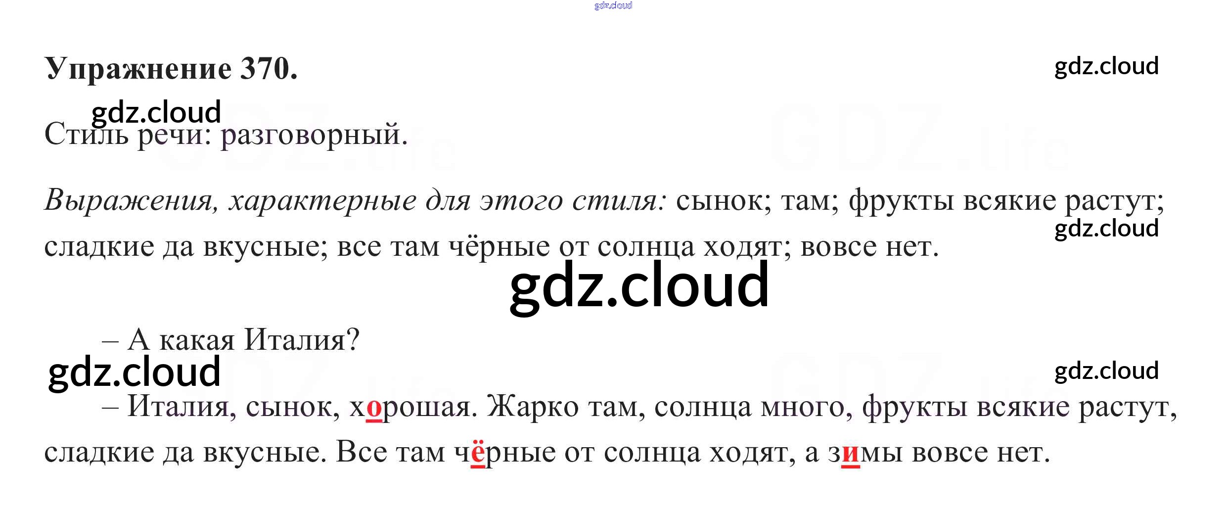 Ответ на задание 370 Учебник Русский язык за 5 (пятый) класс Разумовская, Львова, Капинос, Львов, Богданова, Тронина, Сергеева 2014