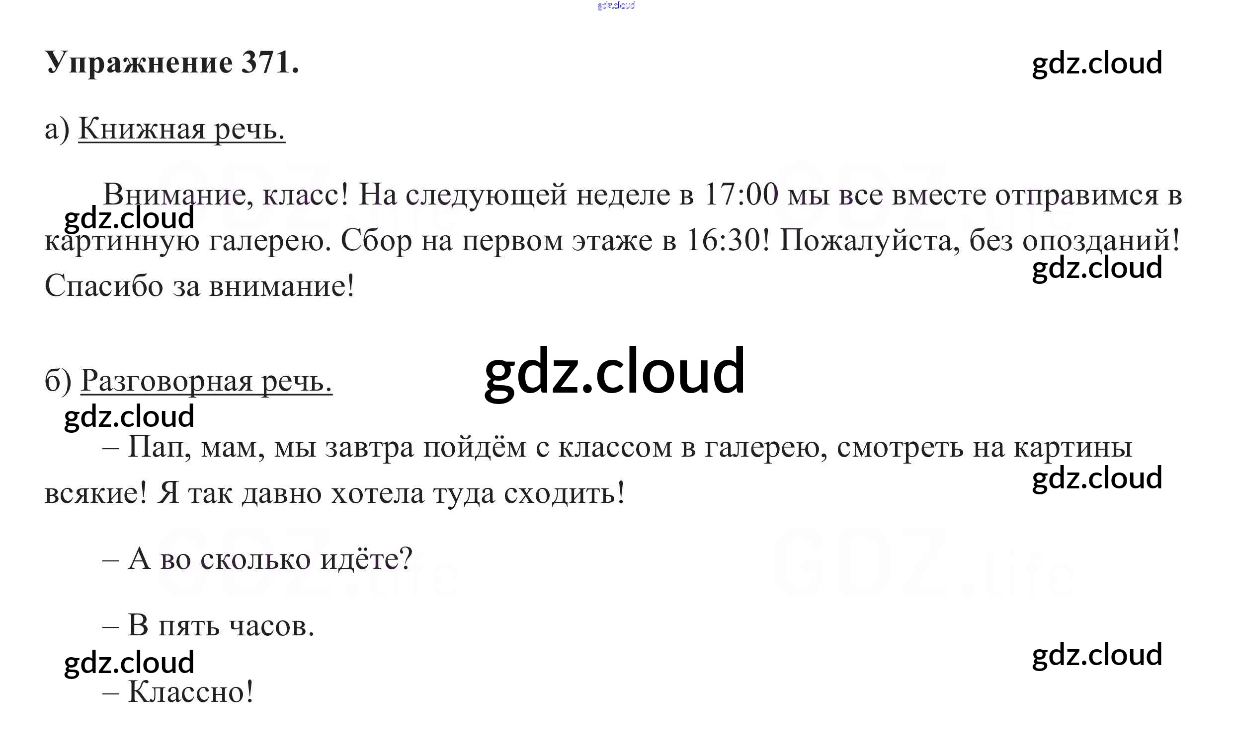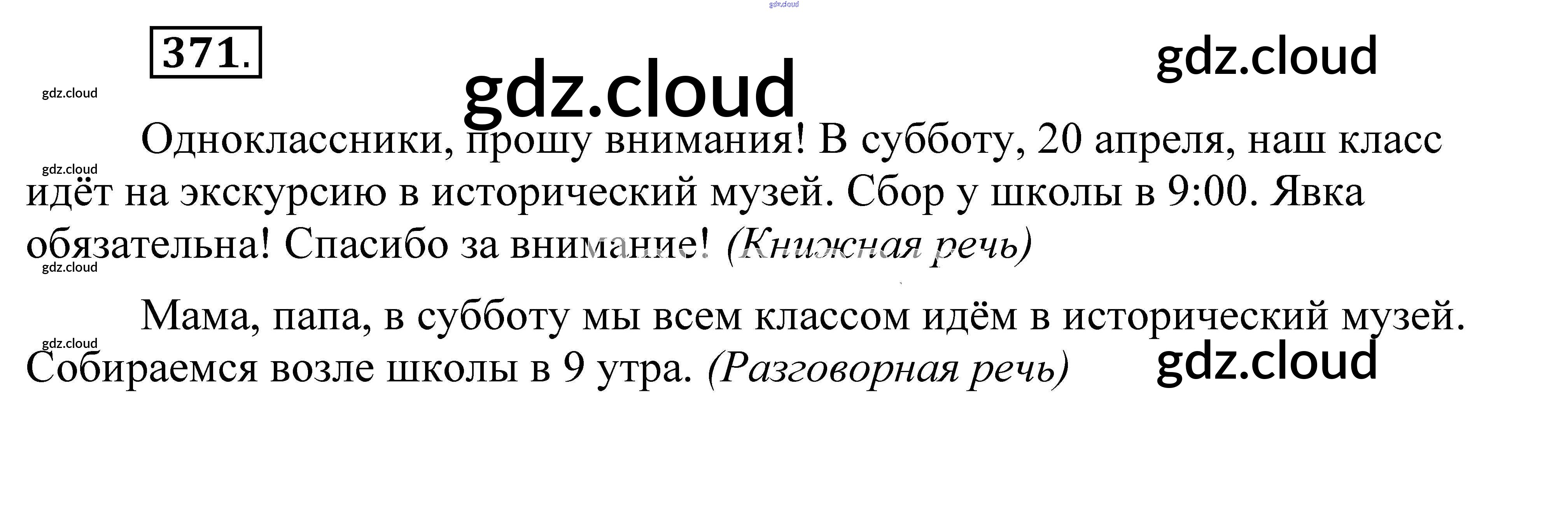 Ответ на задание 371 Учебник Русский язык за 5 (пятый) класс Разумовская, Львова, Капинос, Львов, Богданова, Тронина, Сергеева 2014