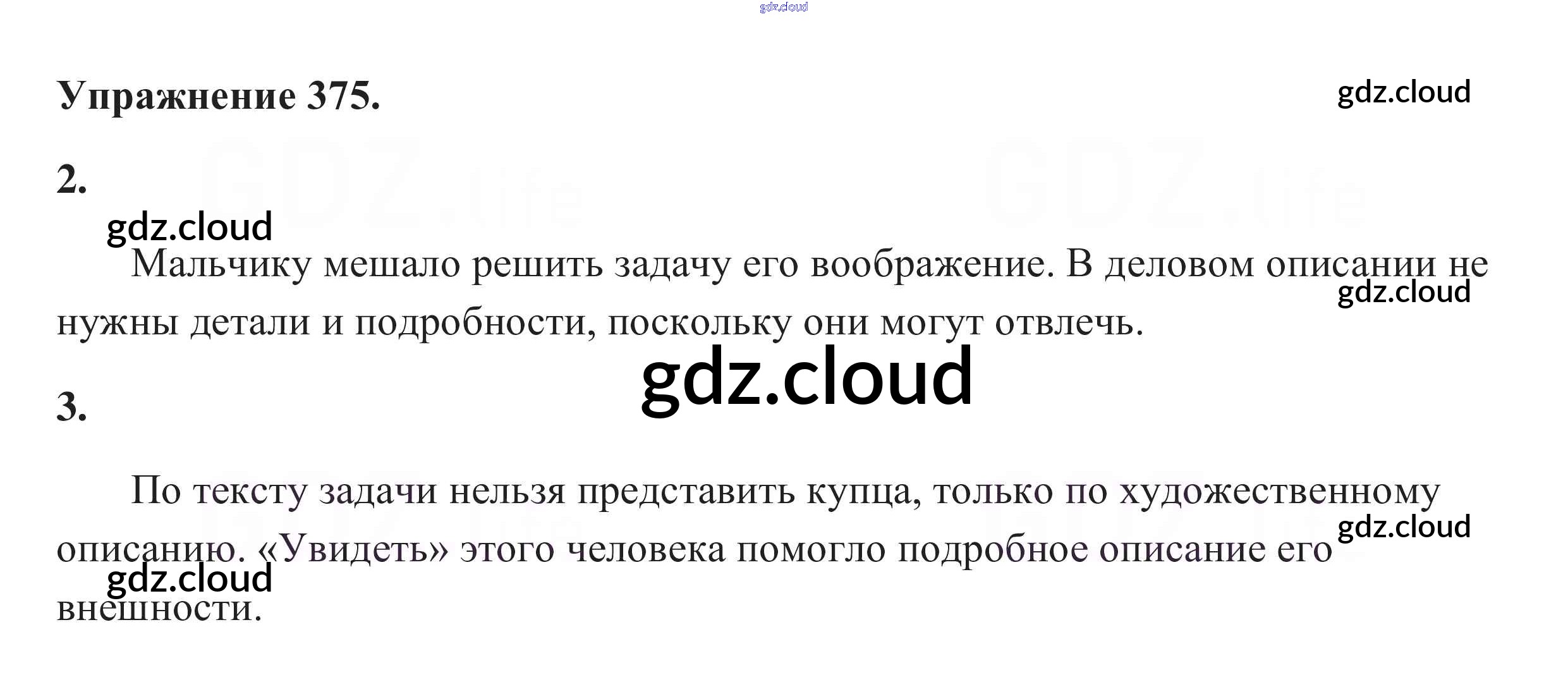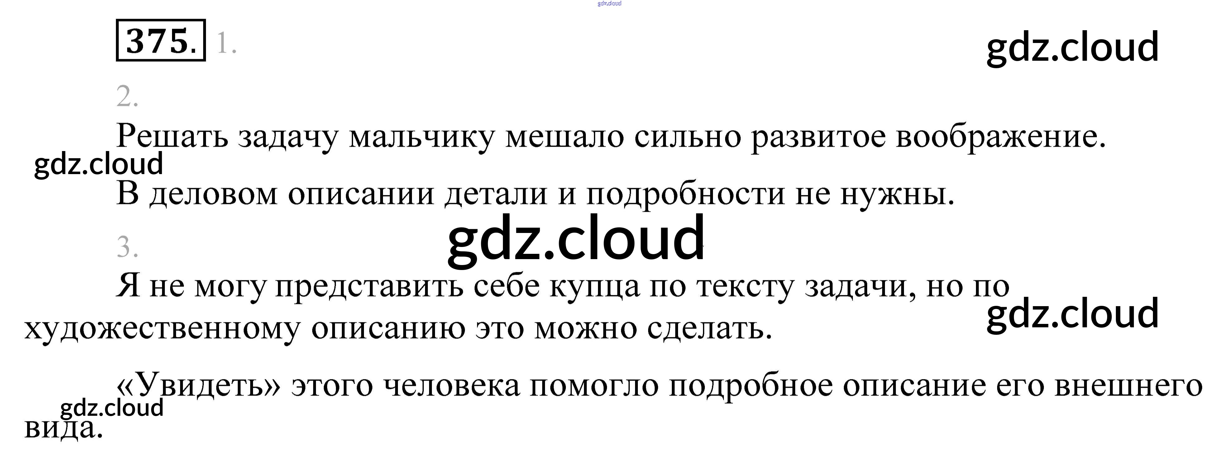 Ответ на задание 375 Учебник Русский язык за 5 (пятый) класс Разумовская, Львова, Капинос, Львов, Богданова, Тронина, Сергеева 2014