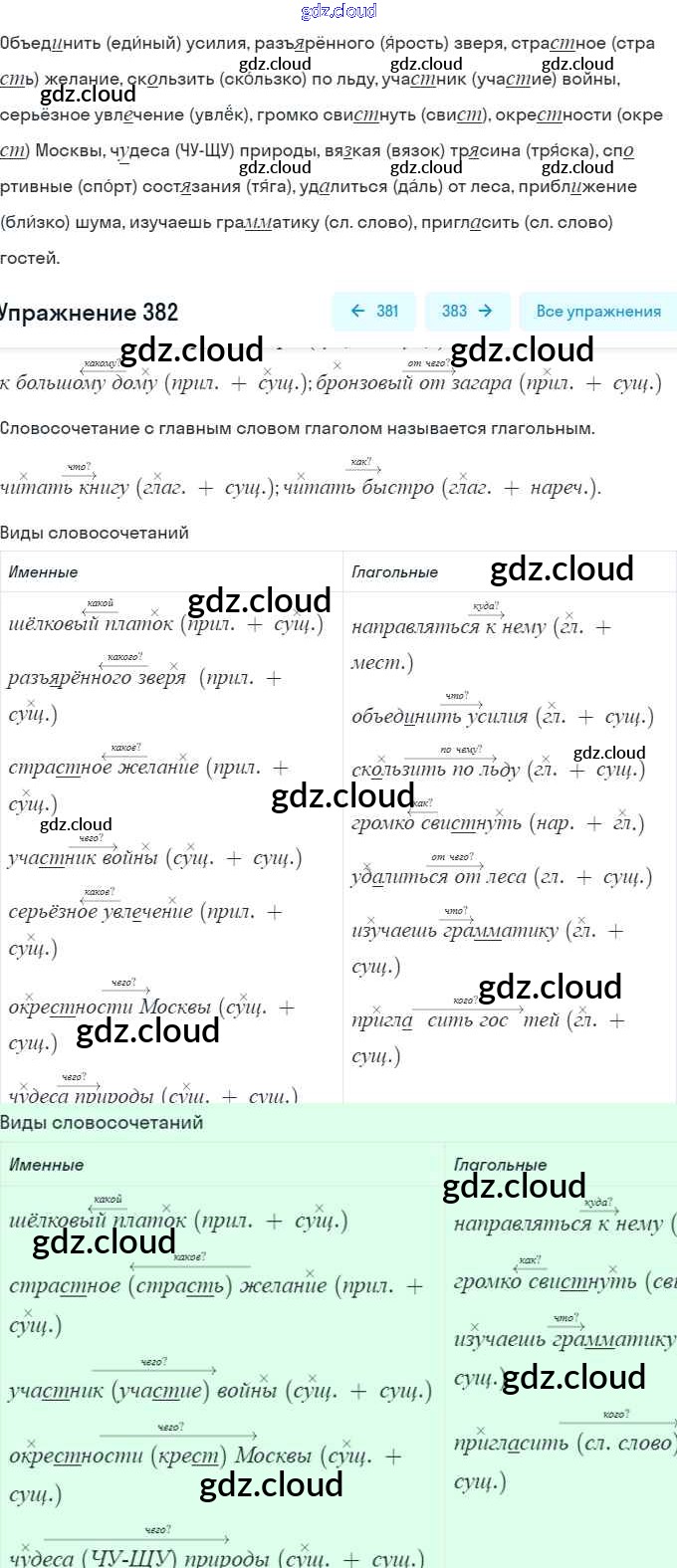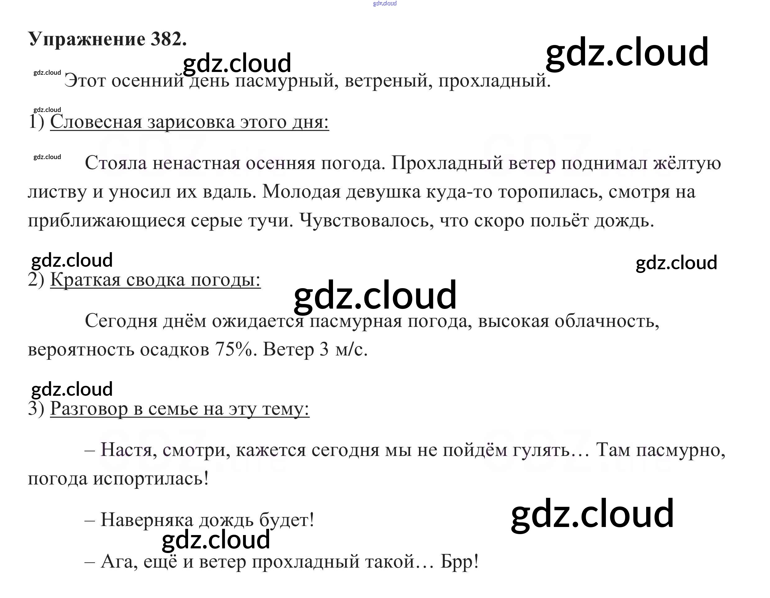 Ответ на задание 382 Учебник Русский язык за 5 (пятый) класс Разумовская, Львова, Капинос, Львов, Богданова, Тронина, Сергеева 2014