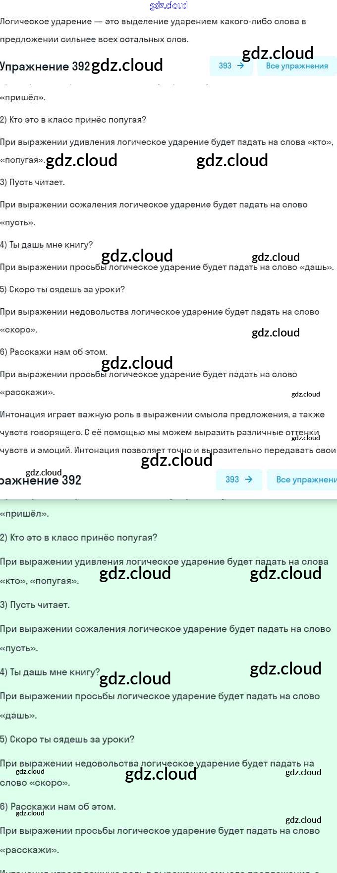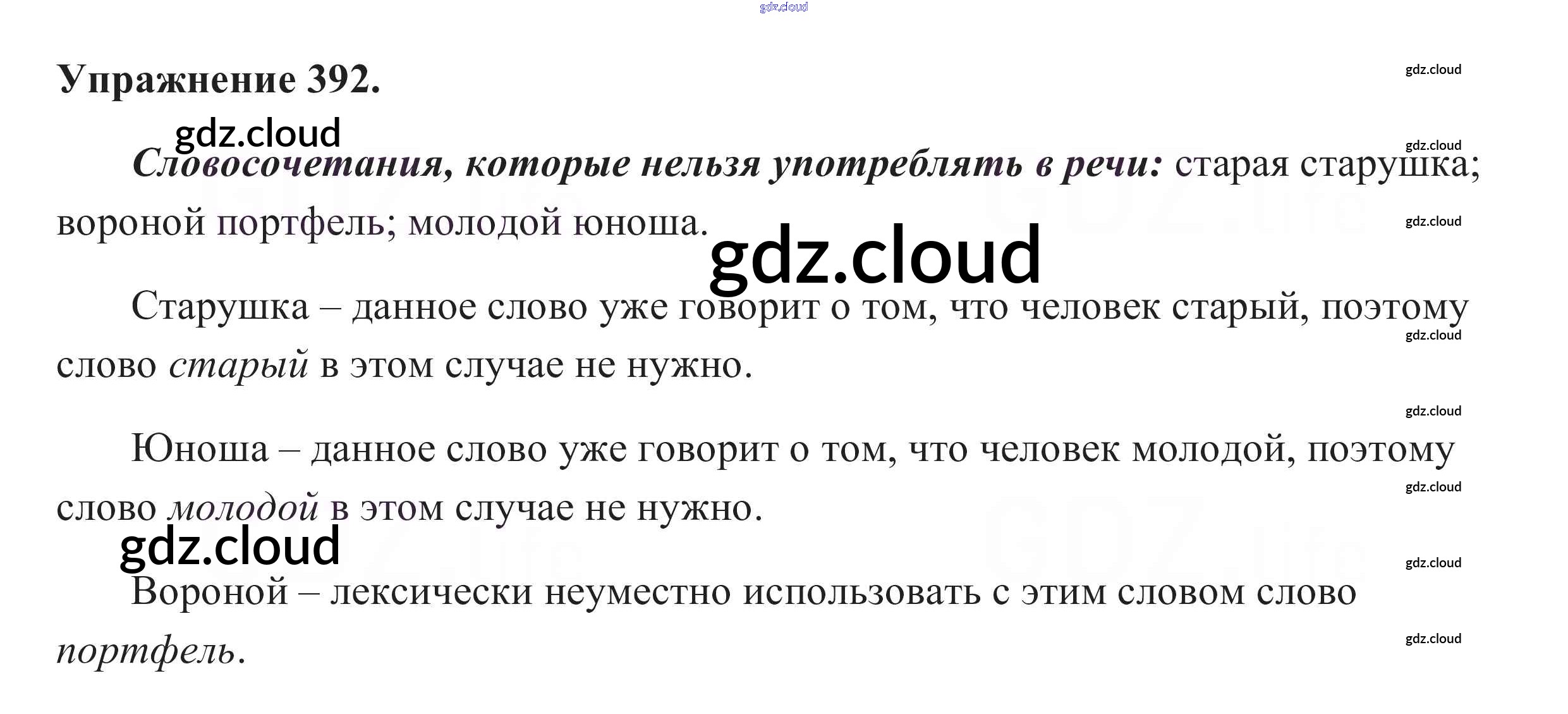 Ответ на задание 392 Учебник Русский язык за 5 (пятый) класс Разумовская, Львова, Капинос, Львов, Богданова, Тронина, Сергеева 2014