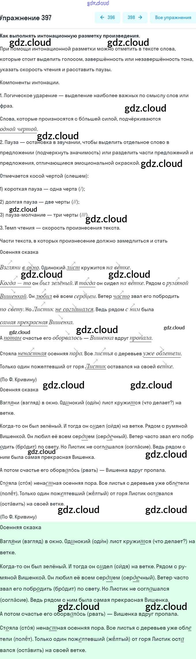 Ответ на задание 397 Учебник Русский язык за 5 (пятый) класс Разумовская, Львова, Капинос, Львов, Богданова, Тронина, Сергеева 2014