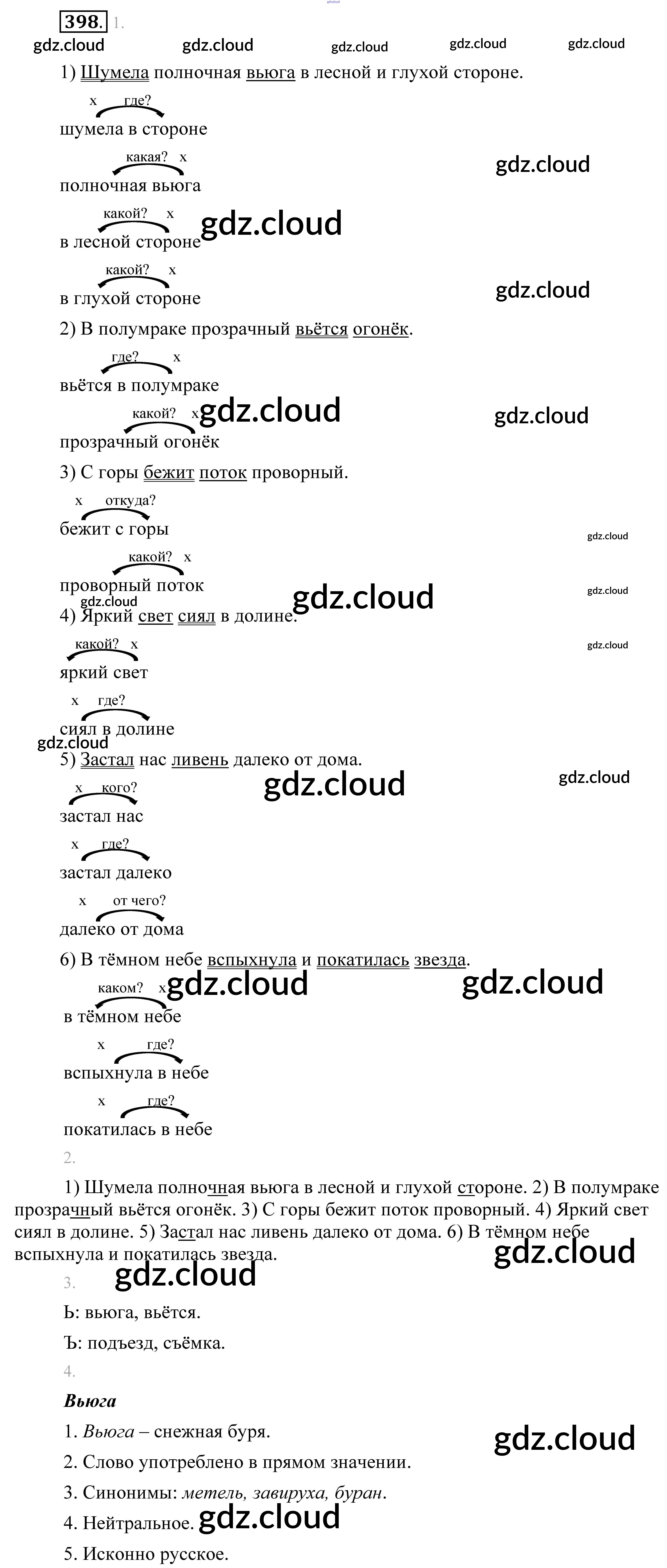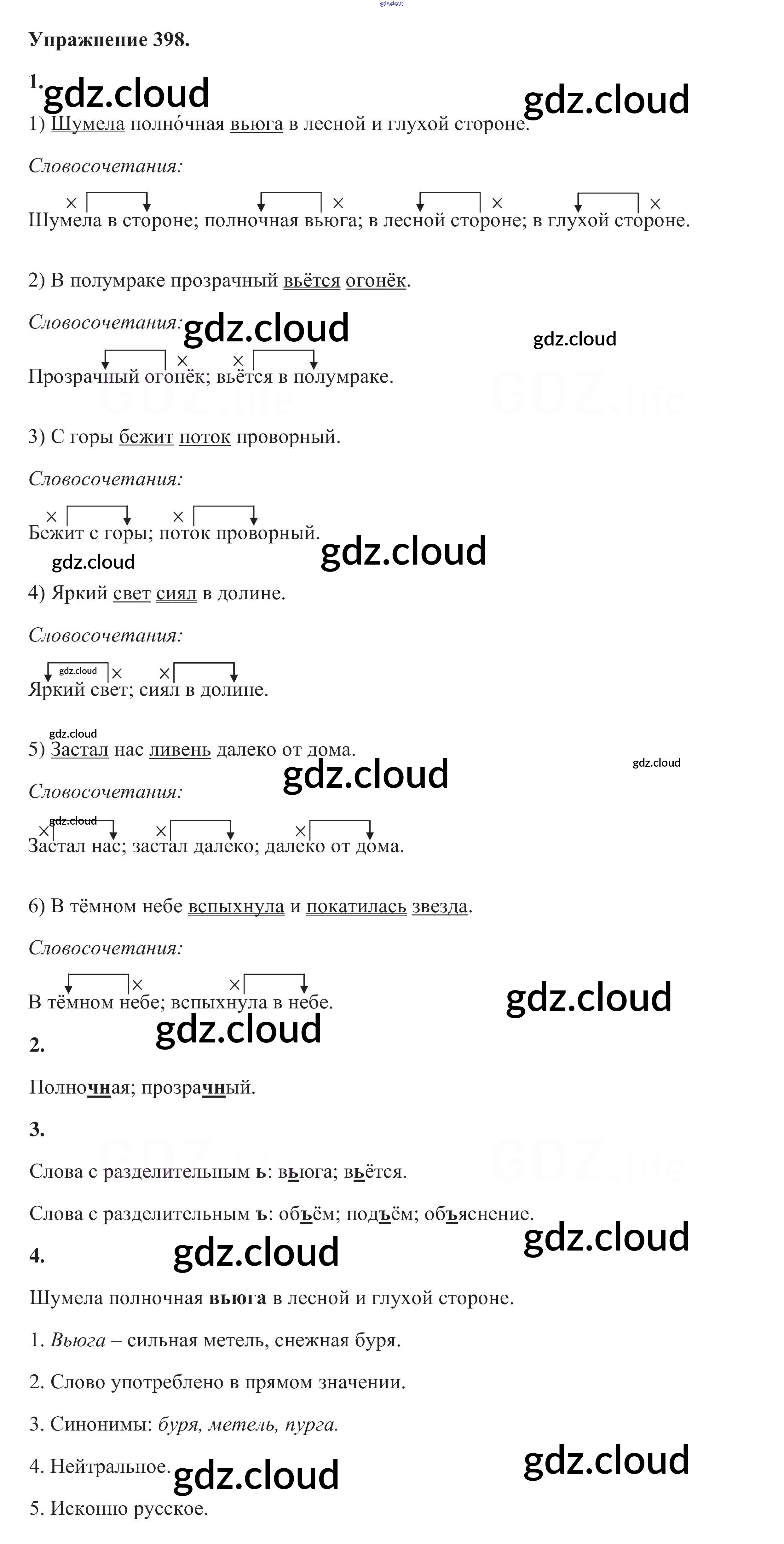 Ответ на задание 398 Учебник Русский язык за 5 (пятый) класс Разумовская, Львова, Капинос, Львов, Богданова, Тронина, Сергеева 2014