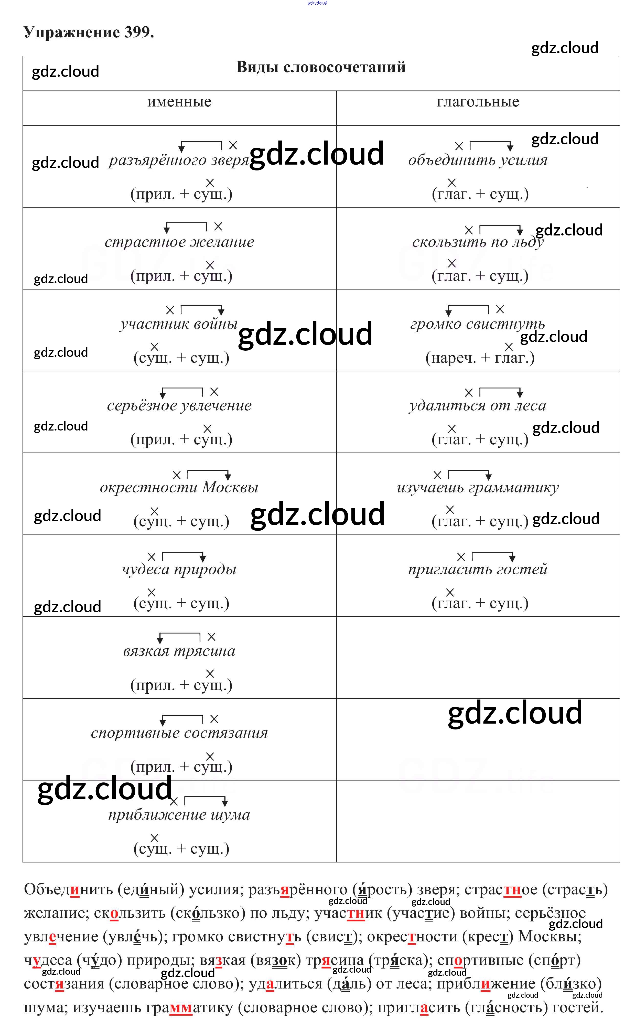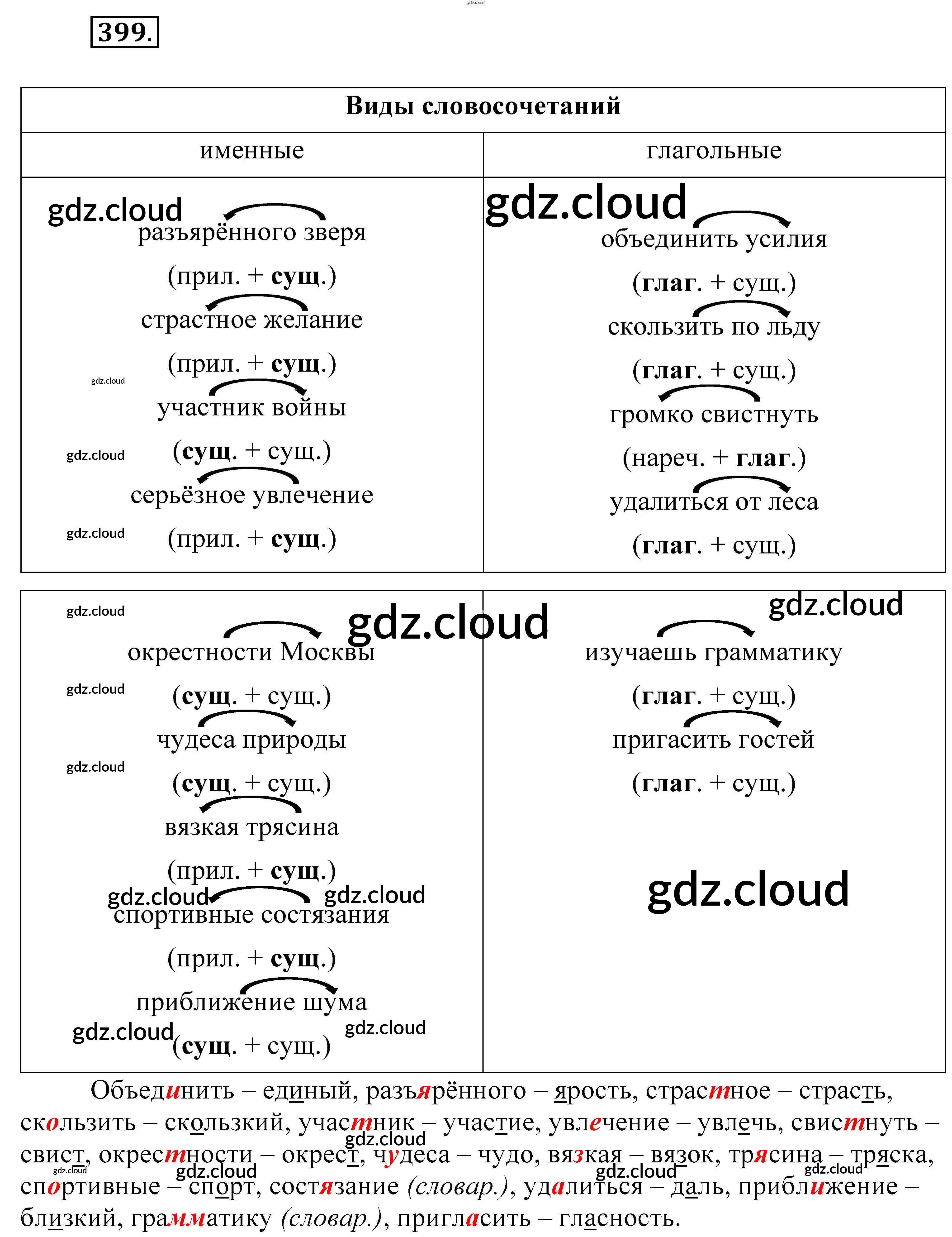 Ответ на задание 399 Учебник Русский язык за 5 (пятый) класс Разумовская, Львова, Капинос, Львов, Богданова, Тронина, Сергеева 2014