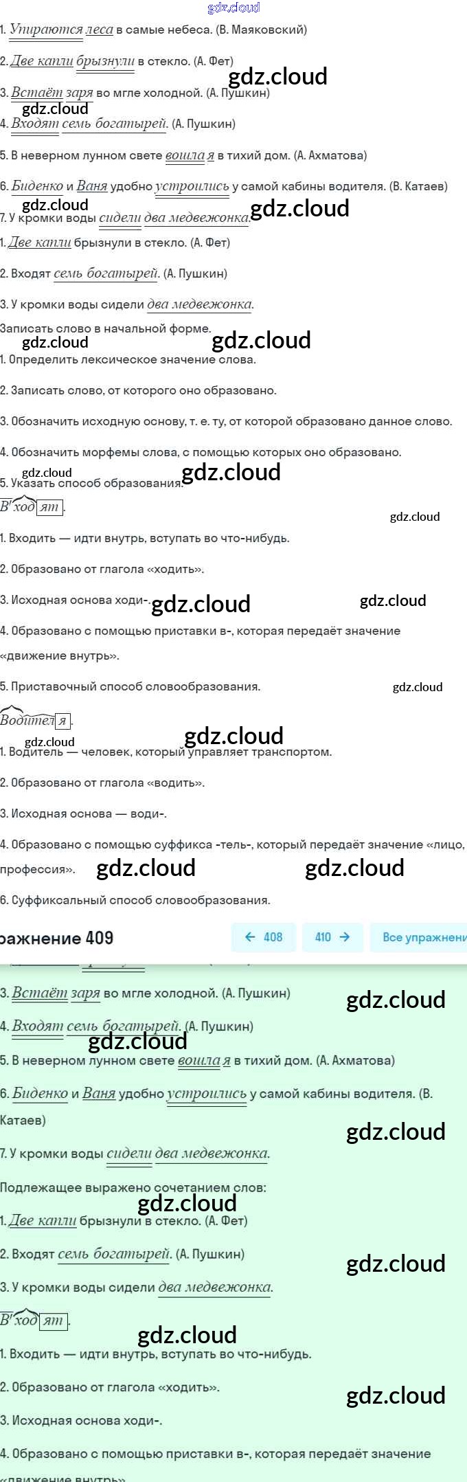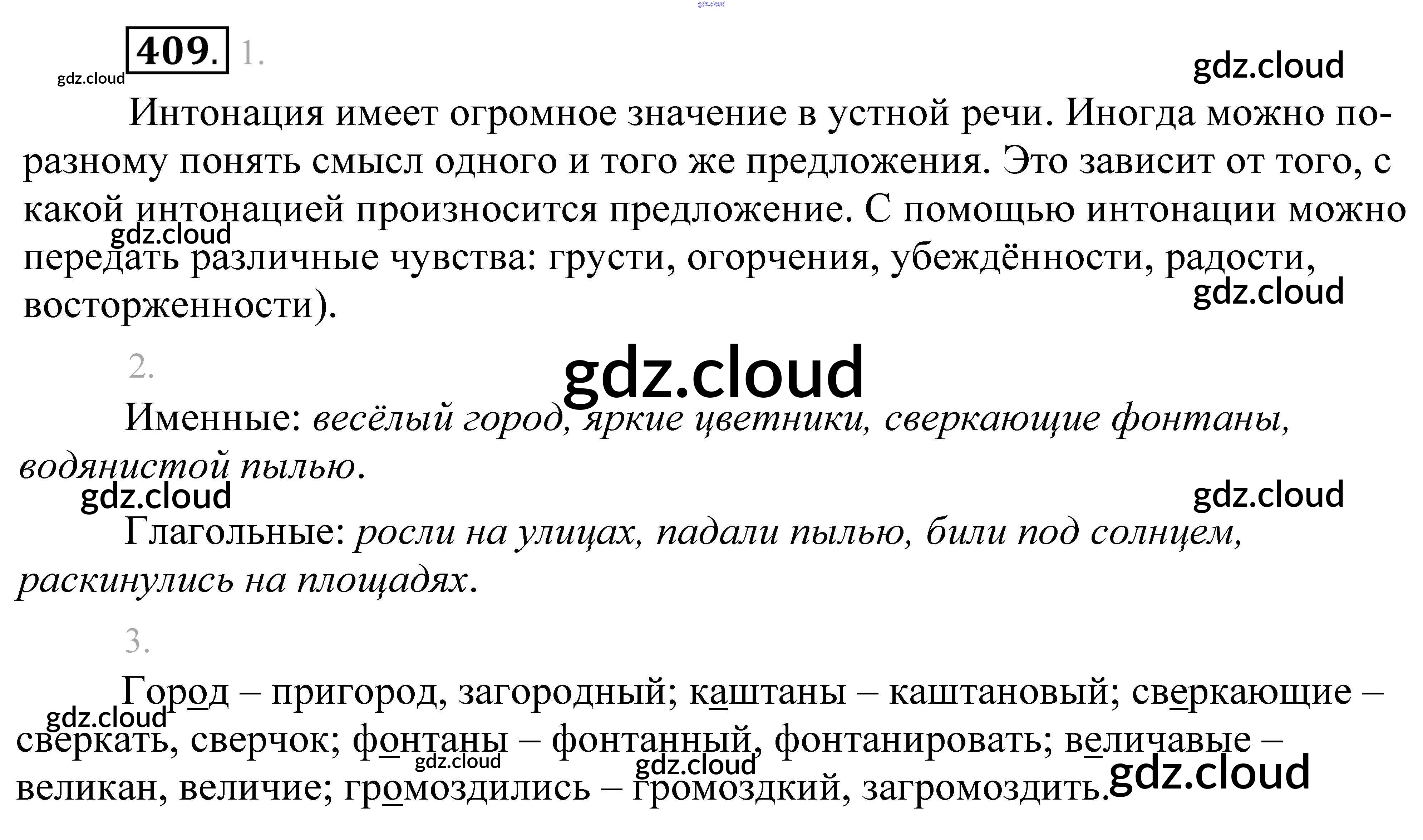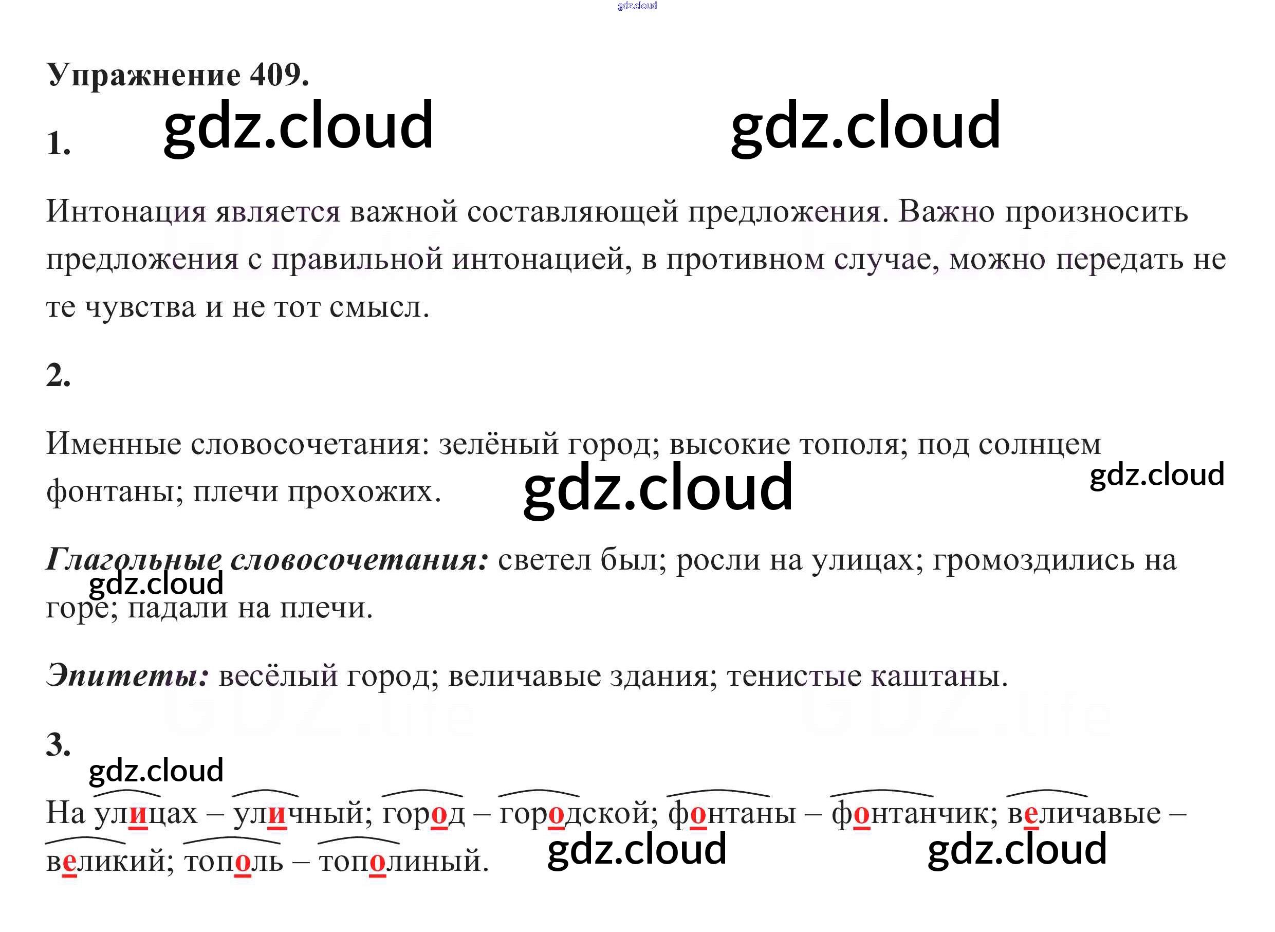 Ответ на задание 409 Учебник Русский язык за 5 (пятый) класс Разумовская, Львова, Капинос, Львов, Богданова, Тронина, Сергеева 2014