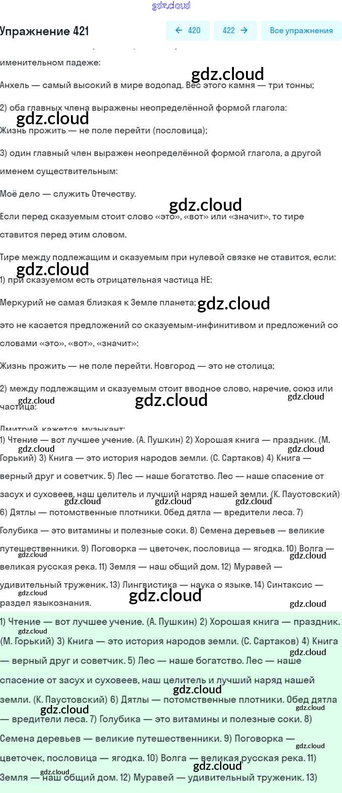 Ответ на задание 421 Учебник Русский язык за 5 (пятый) класс Разумовская, Львова, Капинос, Львов, Богданова, Тронина, Сергеева 2014