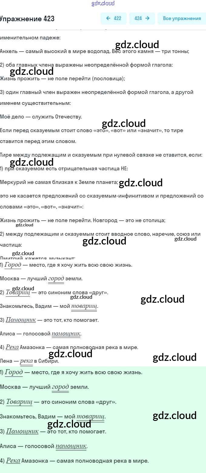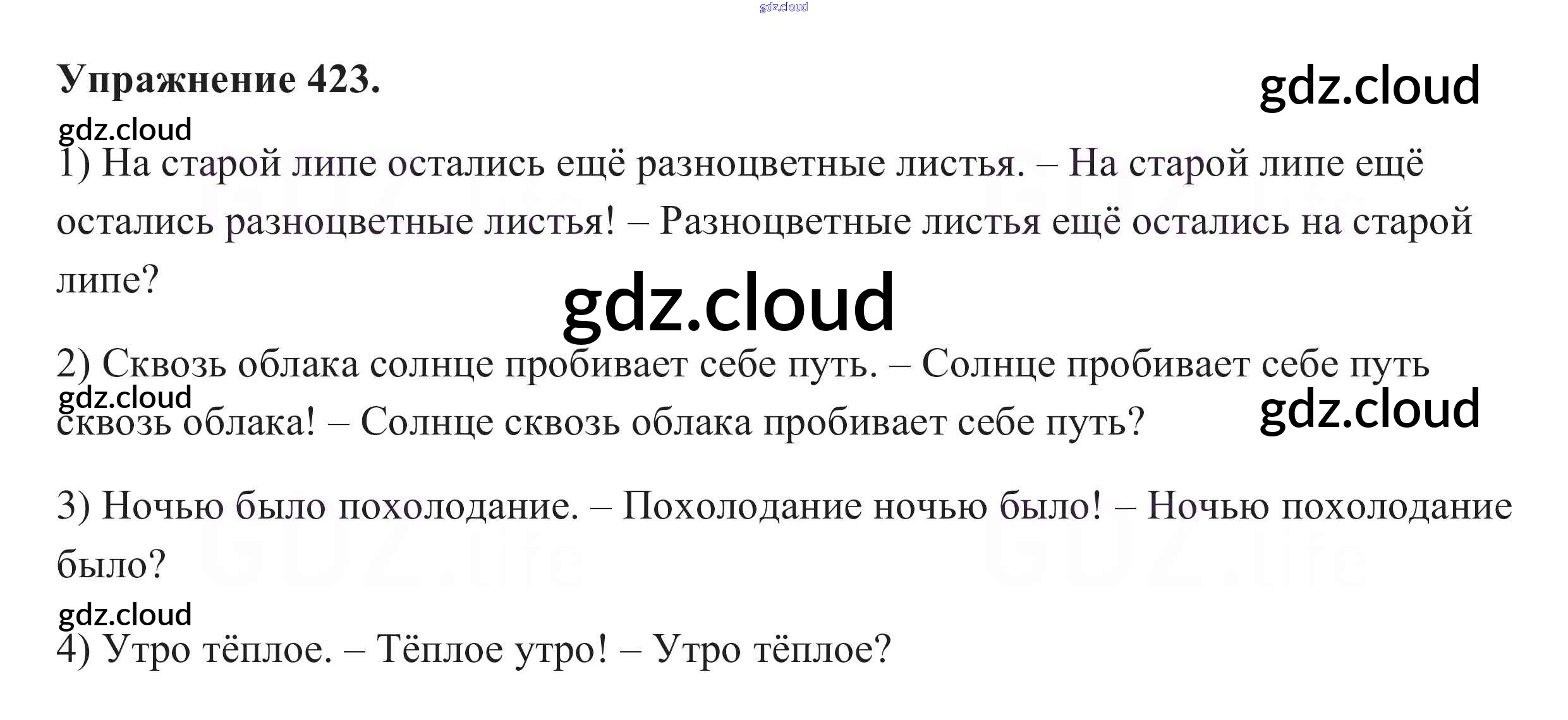 Ответ на задание 423 Учебник Русский язык за 5 (пятый) класс Разумовская, Львова, Капинос, Львов, Богданова, Тронина, Сергеева 2014
