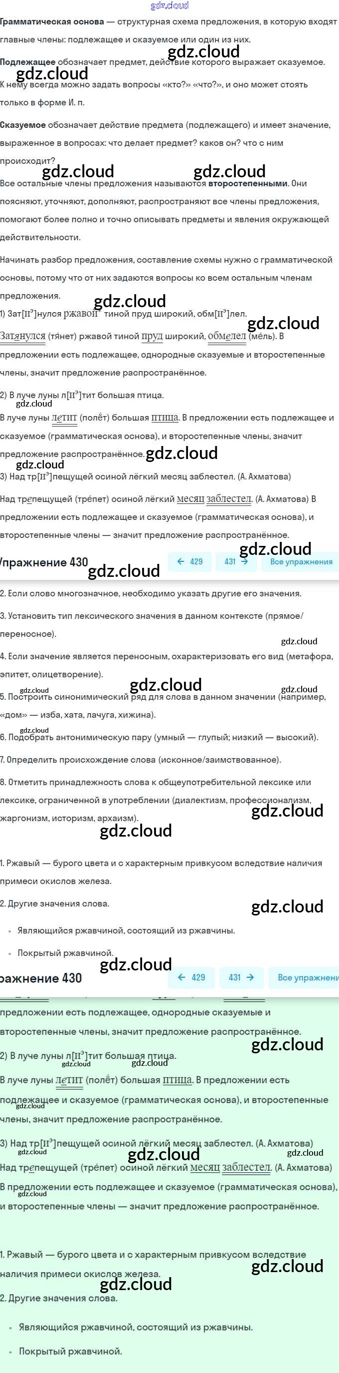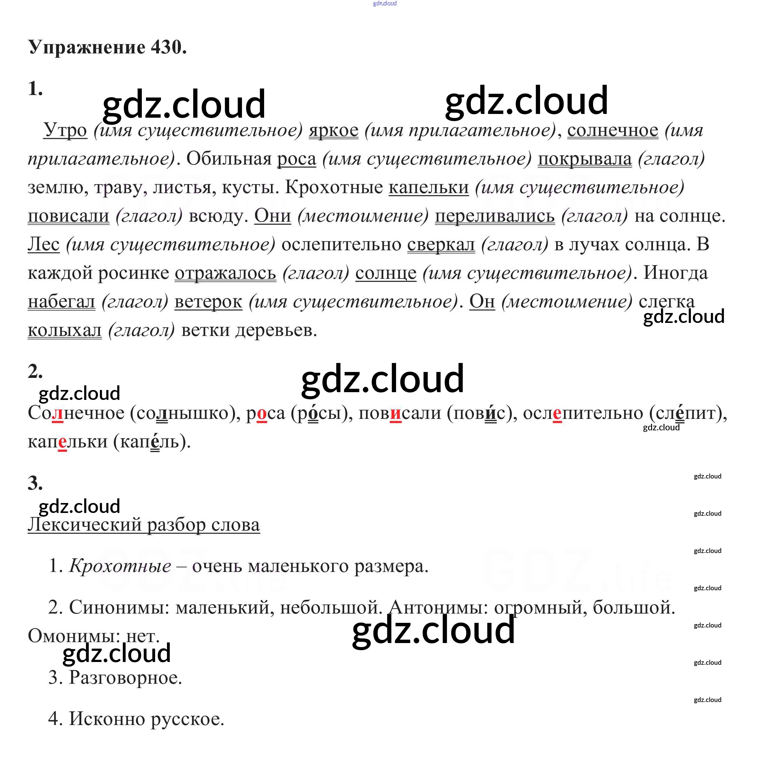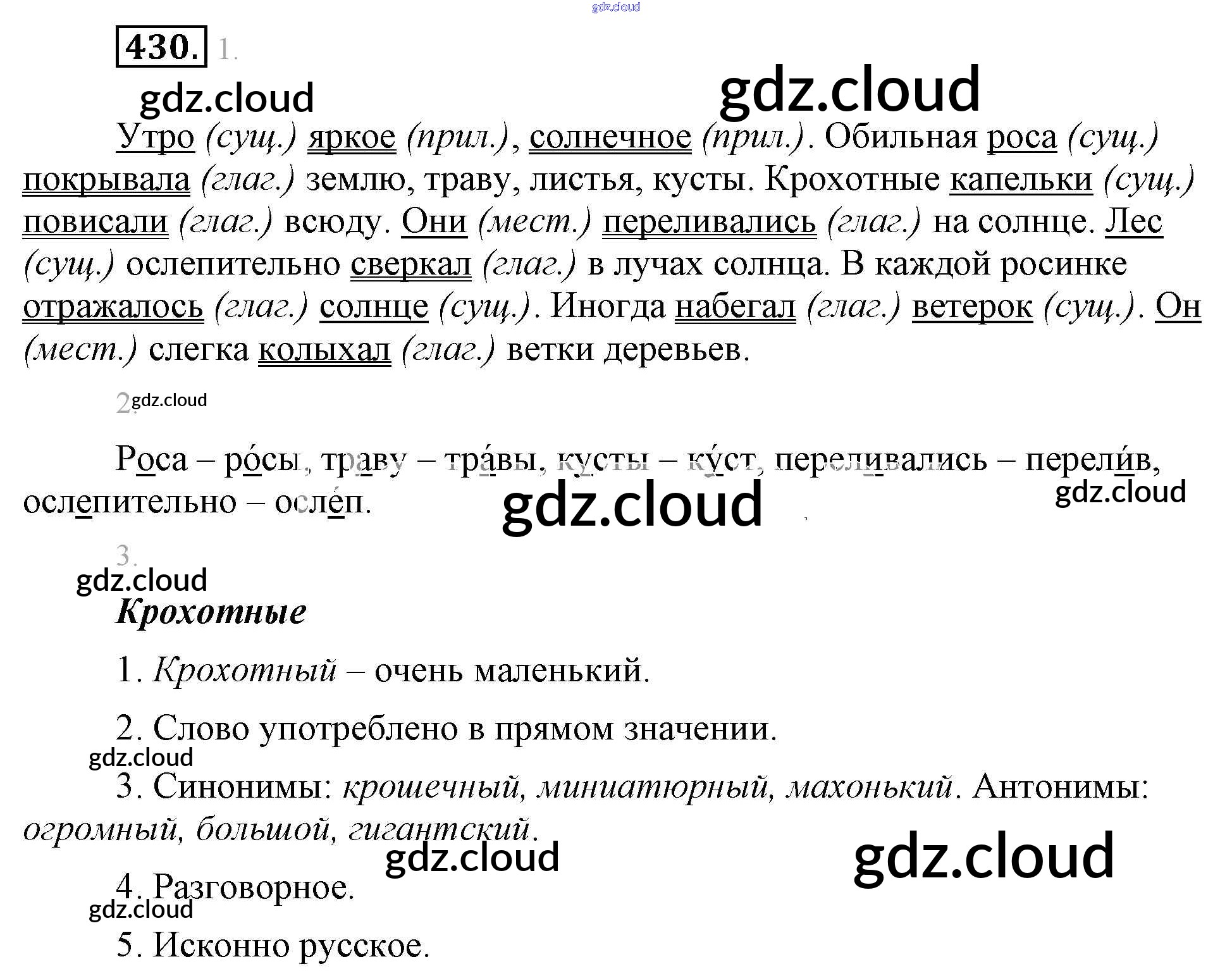 Ответ на задание 430 Учебник Русский язык за 5 (пятый) класс Разумовская, Львова, Капинос, Львов, Богданова, Тронина, Сергеева 2014