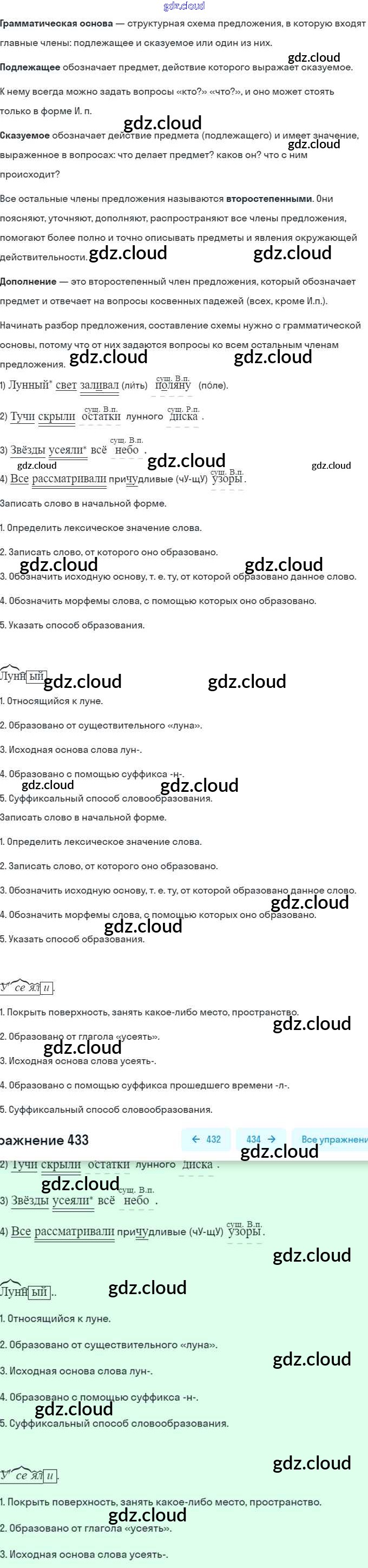 Ответ на задание 433 Учебник Русский язык за 5 (пятый) класс Разумовская, Львова, Капинос, Львов, Богданова, Тронина, Сергеева 2014