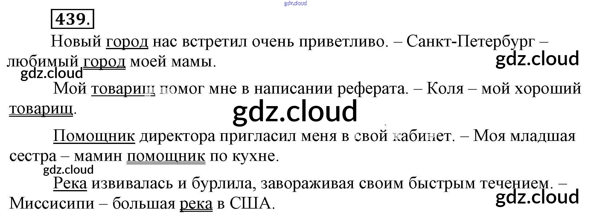 Ответ на задание 439 Учебник Русский язык за 5 (пятый) класс Разумовская, Львова, Капинос, Львов, Богданова, Тронина, Сергеева 2014