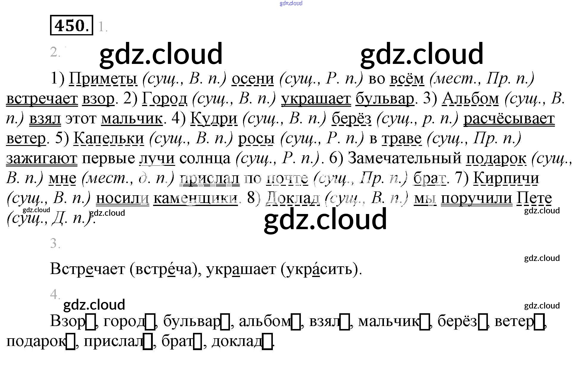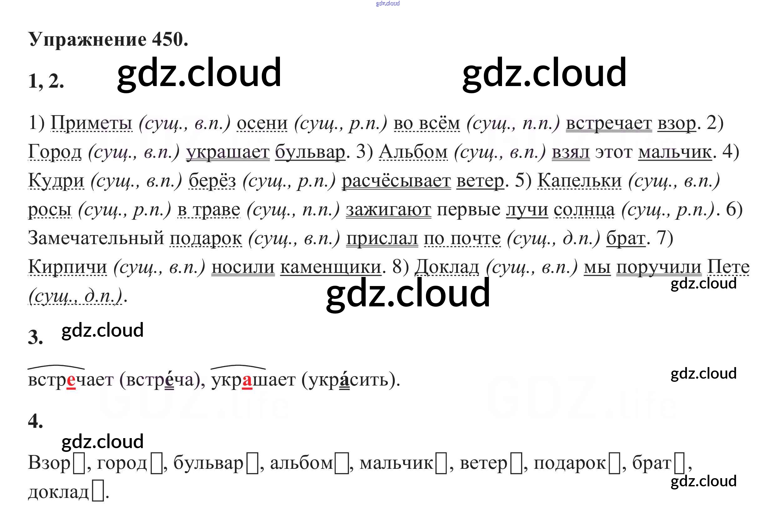 Ответ на задание 450 Учебник Русский язык за 5 (пятый) класс Разумовская, Львова, Капинос, Львов, Богданова, Тронина, Сергеева 2014