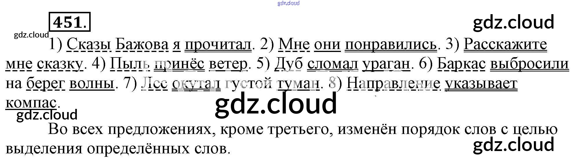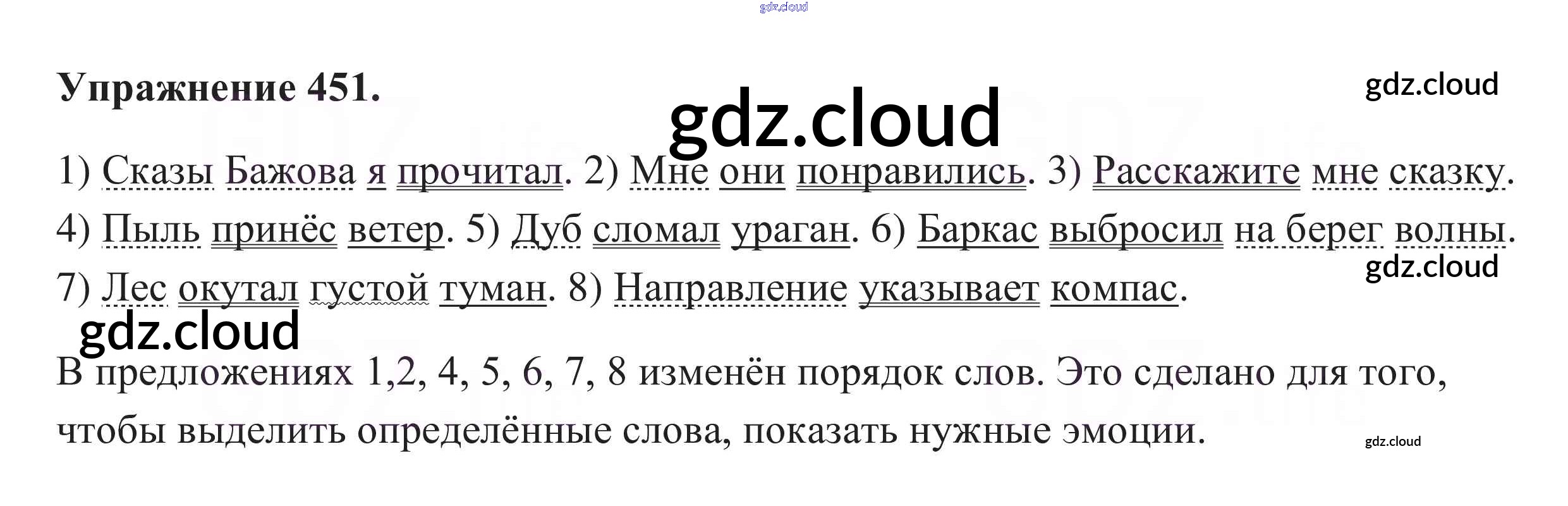 Ответ на задание 451 Учебник Русский язык за 5 (пятый) класс Разумовская, Львова, Капинос, Львов, Богданова, Тронина, Сергеева 2014