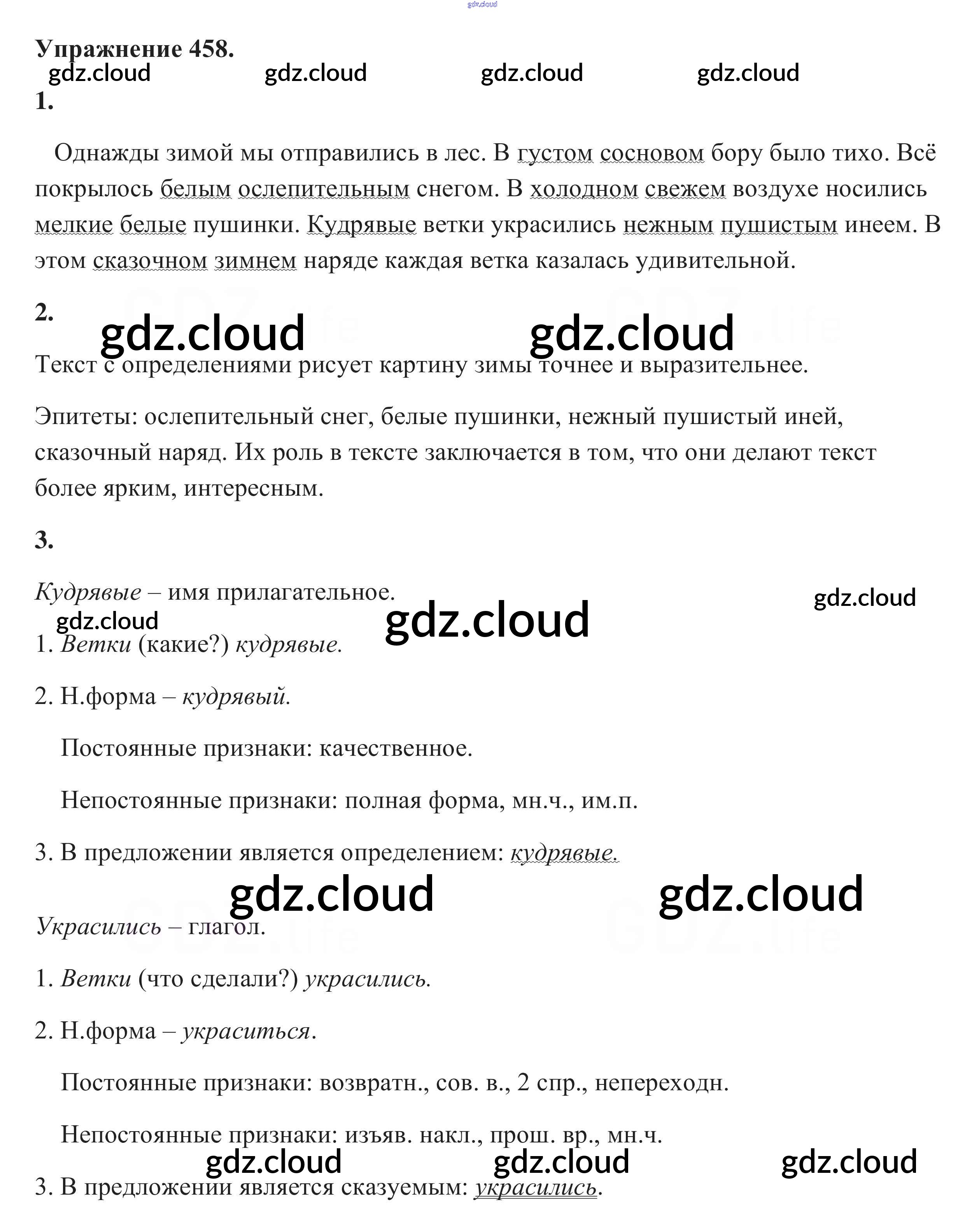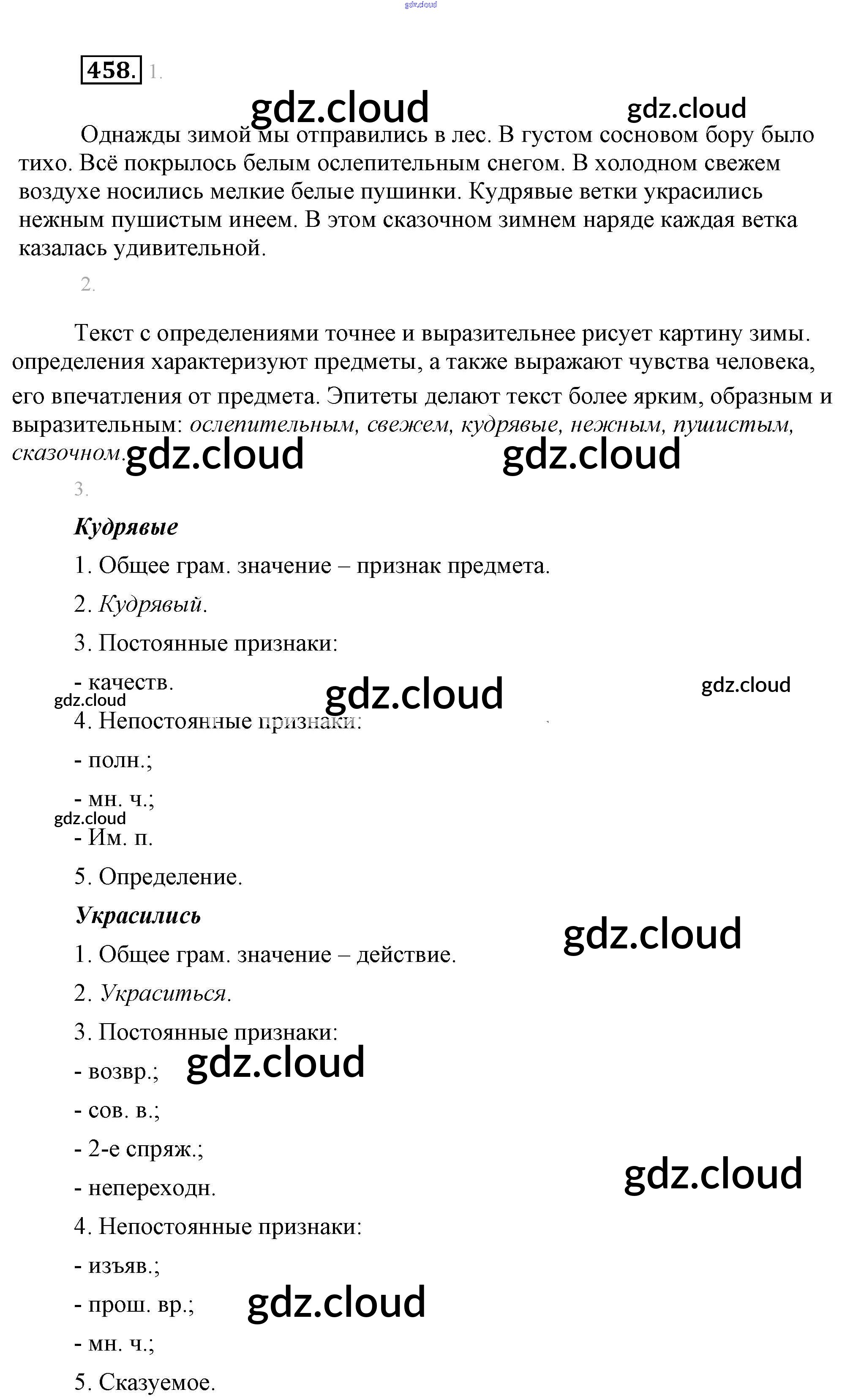 Ответ на задание 458 Учебник Русский язык за 5 (пятый) класс Разумовская, Львова, Капинос, Львов, Богданова, Тронина, Сергеева 2014