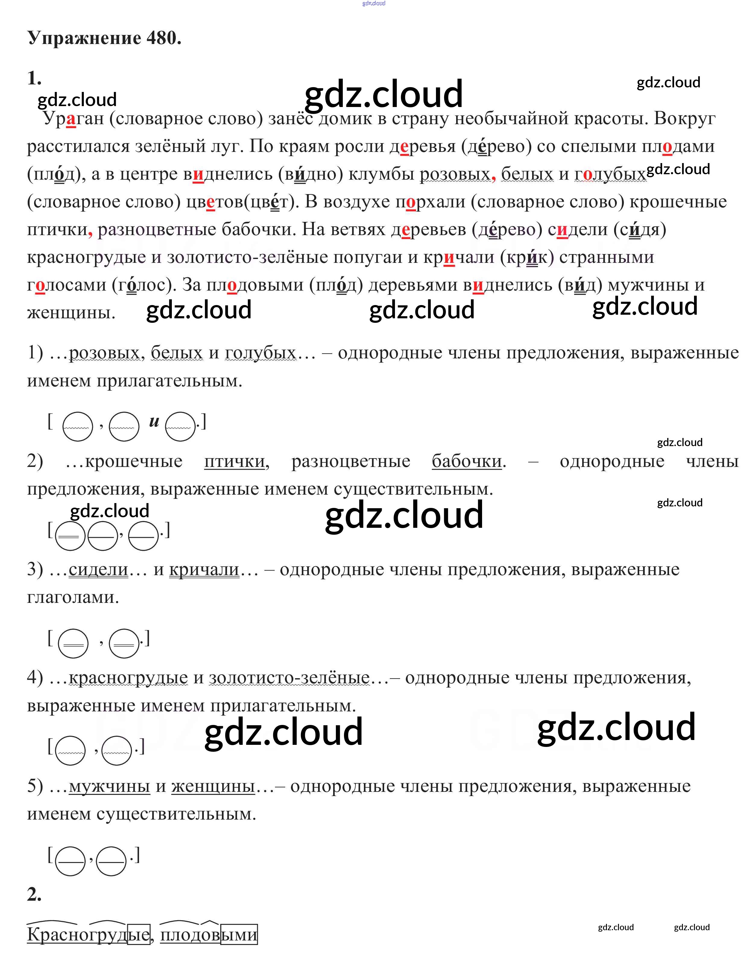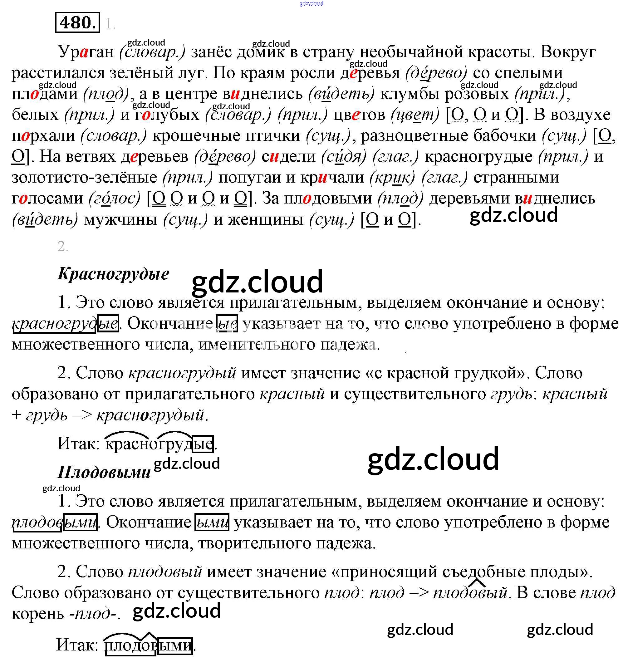 Ответ на задание 480 Учебник Русский язык за 5 (пятый) класс Разумовская, Львова, Капинос, Львов, Богданова, Тронина, Сергеева 2014