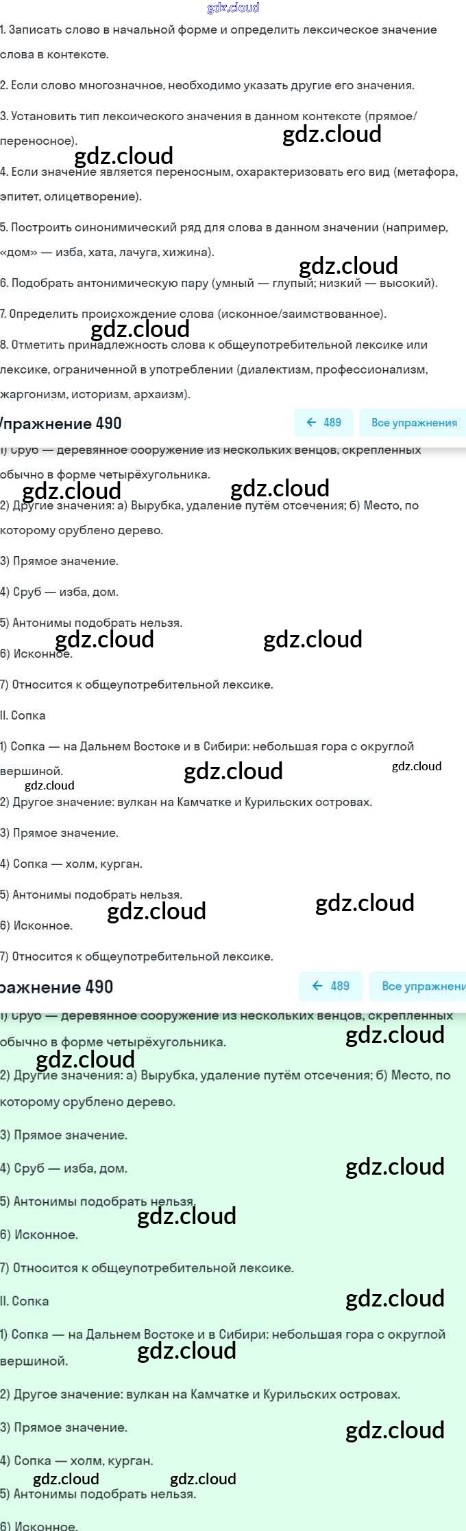 Ответ на задание 490 Учебник Русский язык за 5 (пятый) класс Разумовская, Львова, Капинос, Львов, Богданова, Тронина, Сергеева 2014