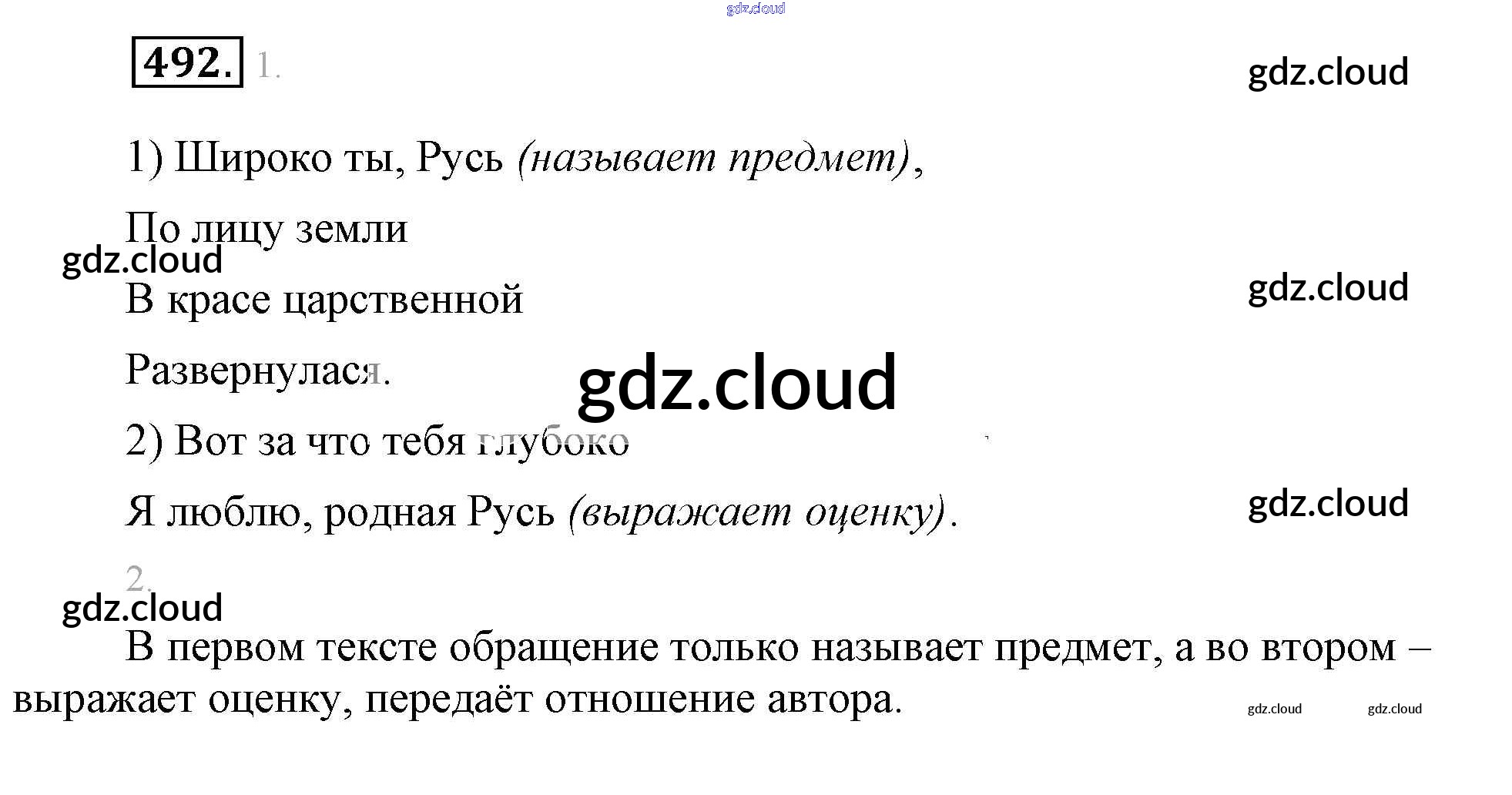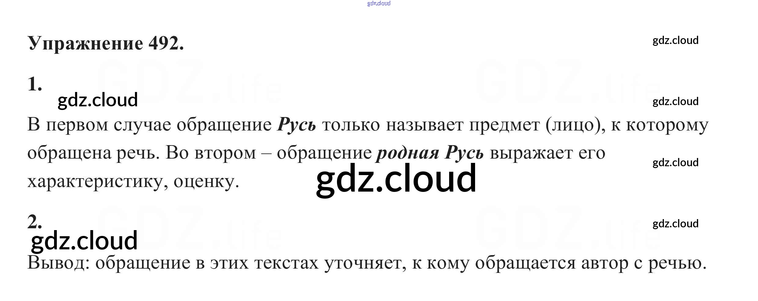 Ответ на задание 492 Учебник Русский язык за 5 (пятый) класс Разумовская, Львова, Капинос, Львов, Богданова, Тронина, Сергеева 2014