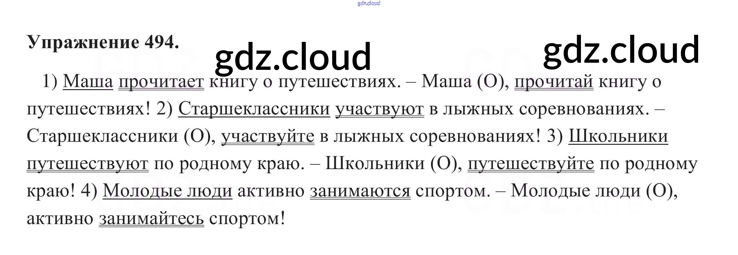 Ответ на задание 494 Учебник Русский язык за 5 (пятый) класс Разумовская, Львова, Капинос, Львов, Богданова, Тронина, Сергеева 2014