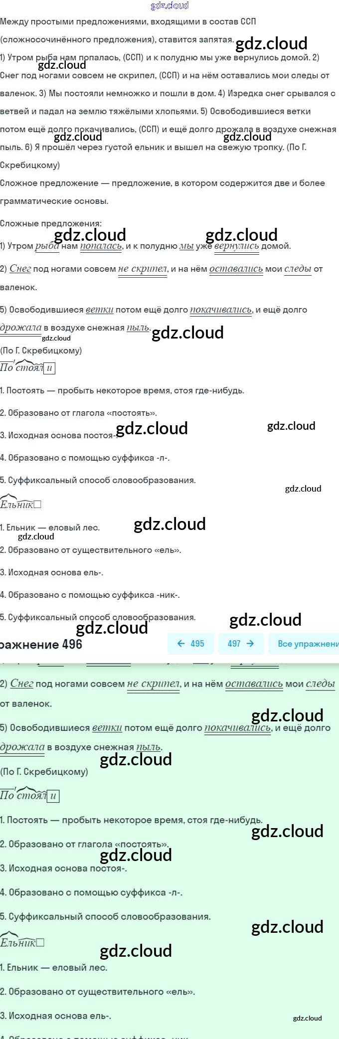 Ответ на задание 496 Учебник Русский язык за 5 (пятый) класс Разумовская, Львова, Капинос, Львов, Богданова, Тронина, Сергеева 2014