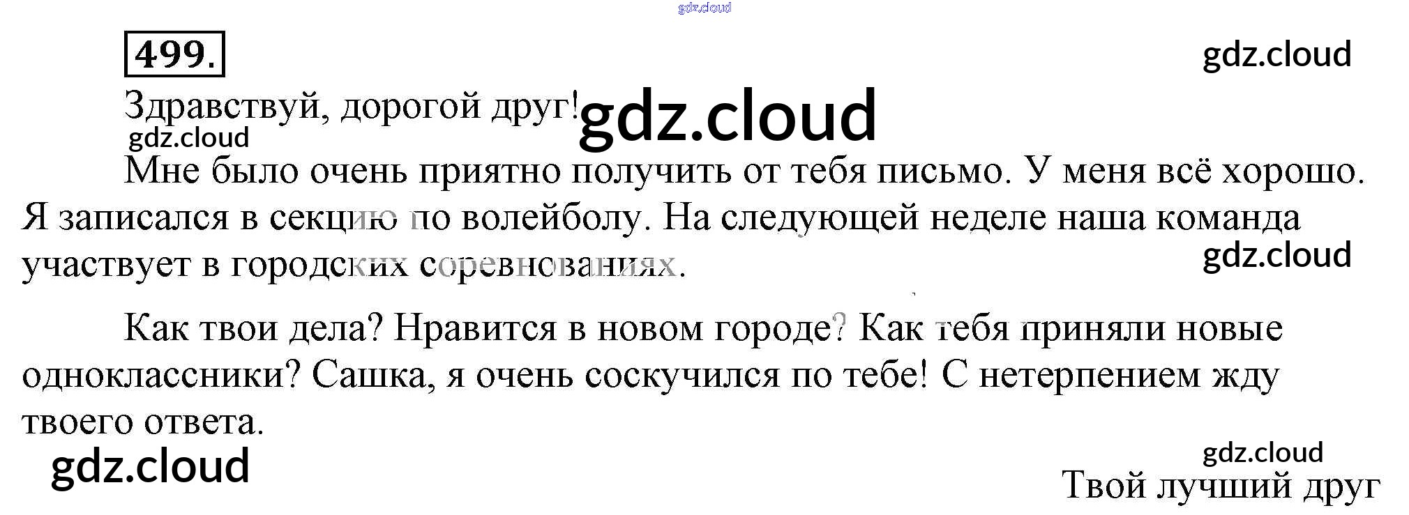 Ответ на задание 499 Учебник Русский язык за 5 (пятый) класс Разумовская, Львова, Капинос, Львов, Богданова, Тронина, Сергеева 2014