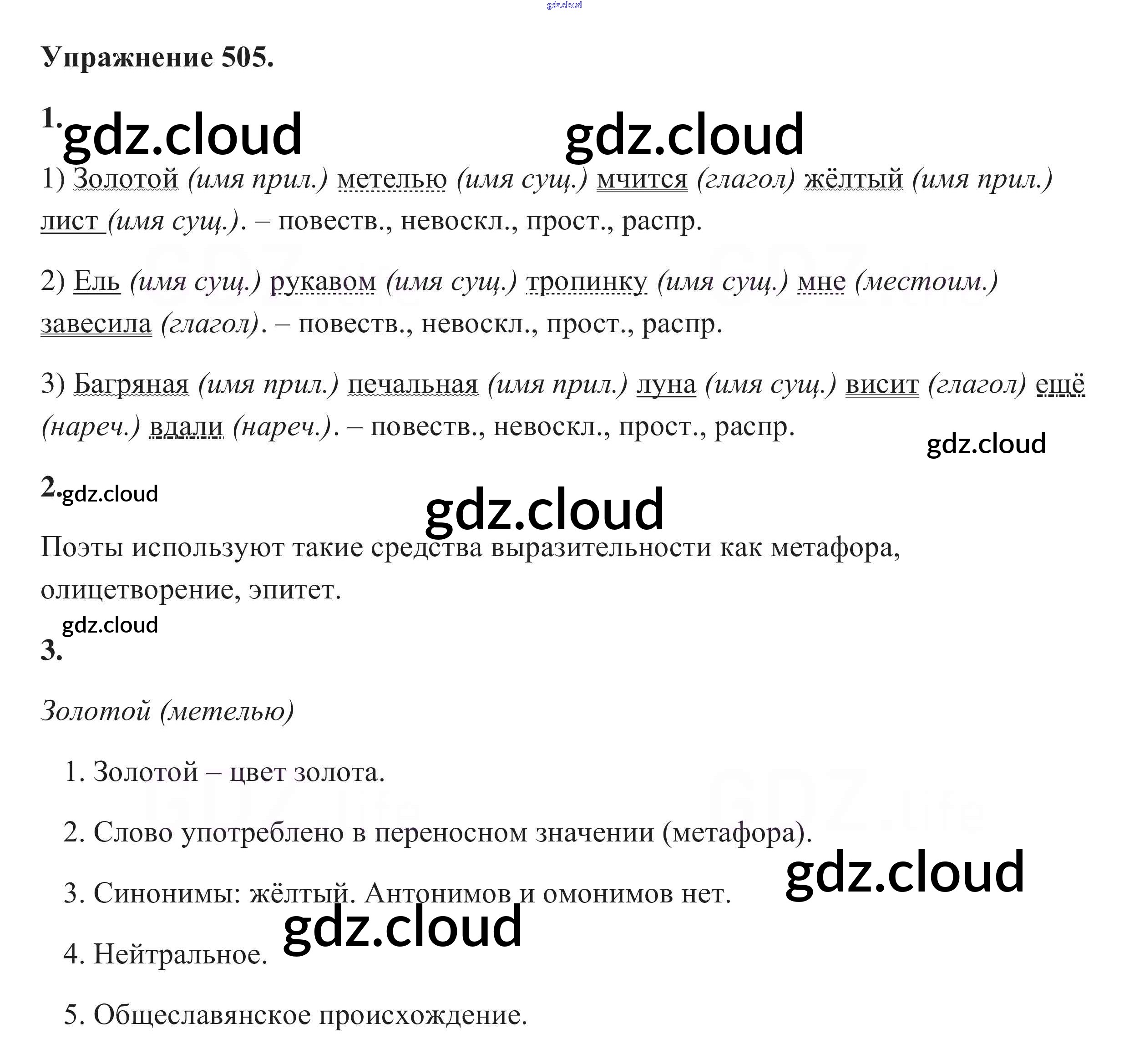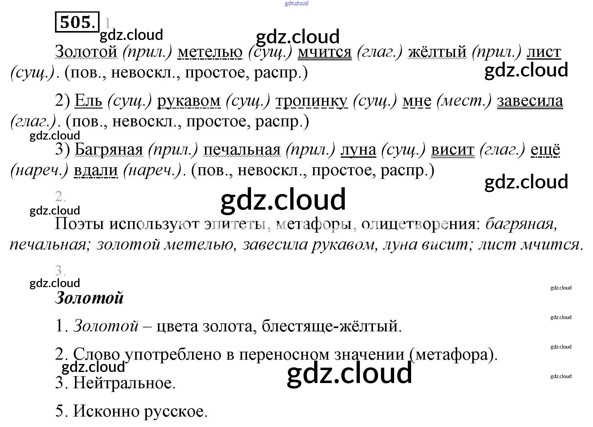 Ответ на задание 505 Учебник Русский язык за 5 (пятый) класс Разумовская, Львова, Капинос, Львов, Богданова, Тронина, Сергеева 2014
