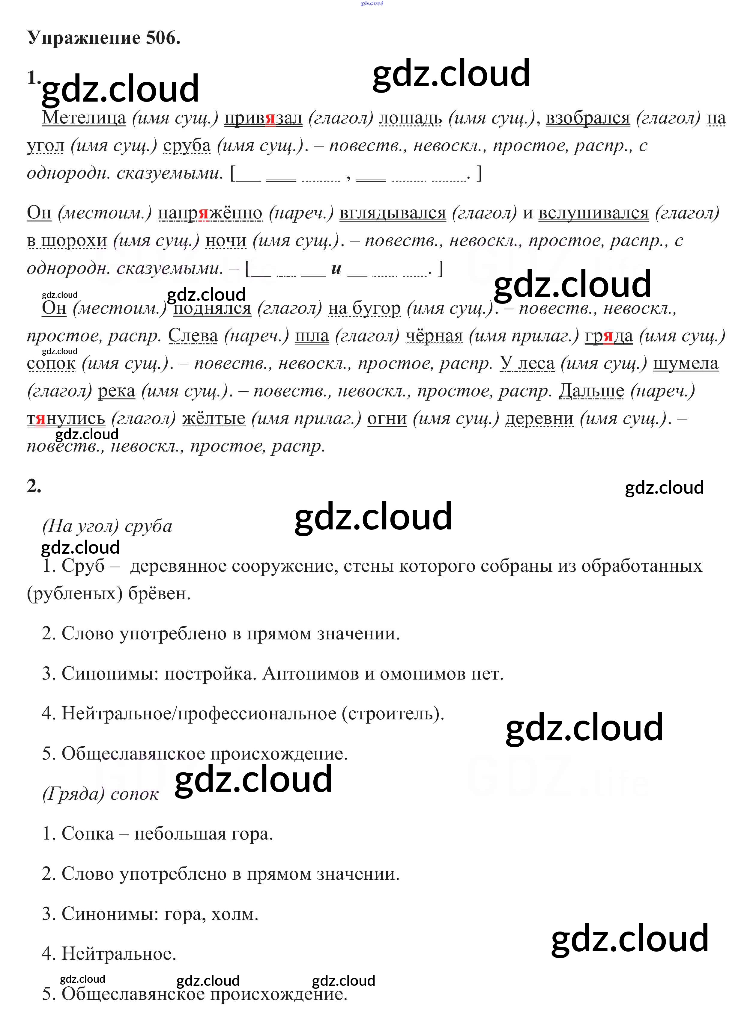 Ответ на задание 506 Учебник Русский язык за 5 (пятый) класс Разумовская, Львова, Капинос, Львов, Богданова, Тронина, Сергеева 2014
