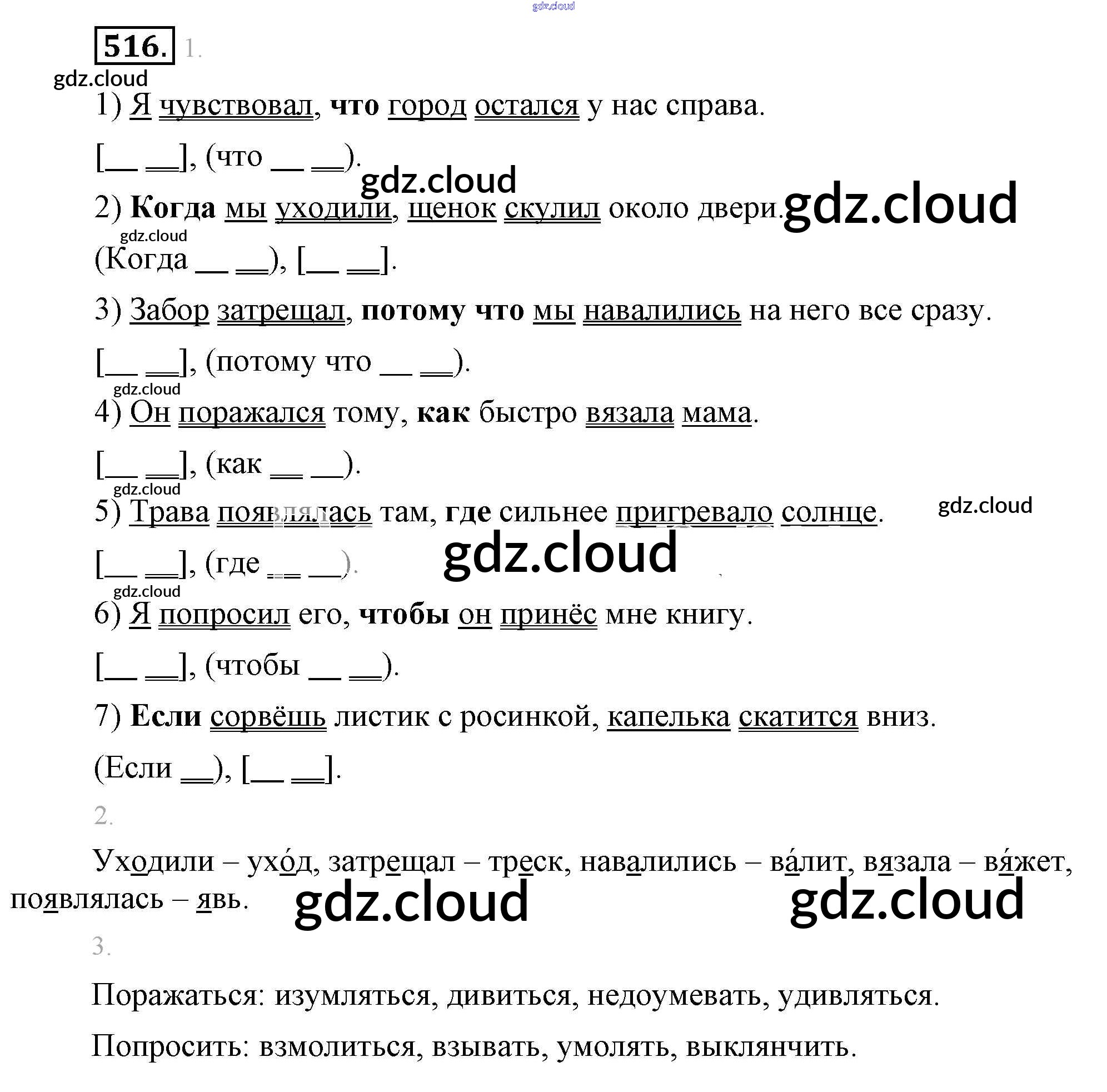Ответ на задание 516 Учебник Русский язык за 5 (пятый) класс Разумовская, Львова, Капинос, Львов, Богданова, Тронина, Сергеева 2014
