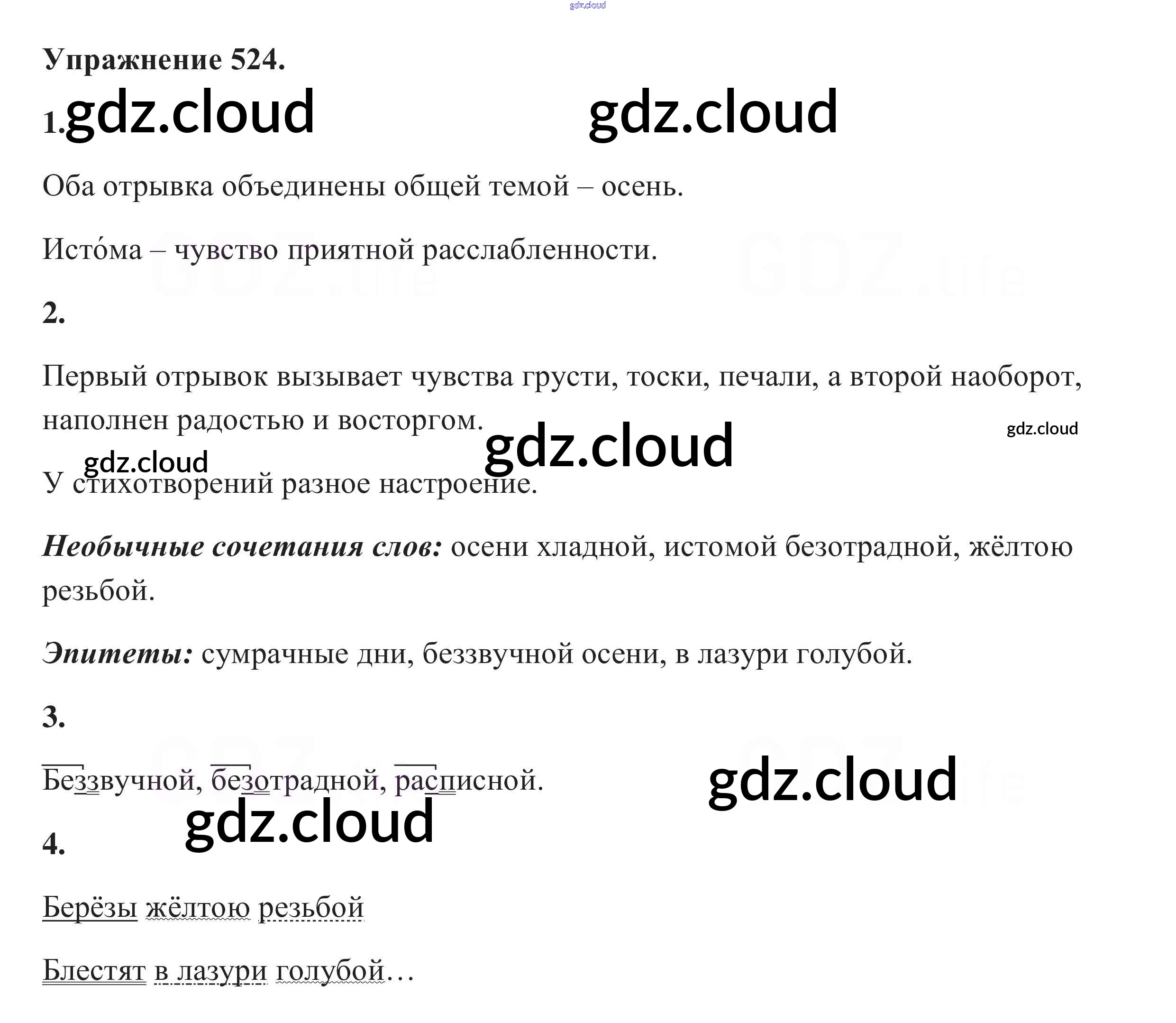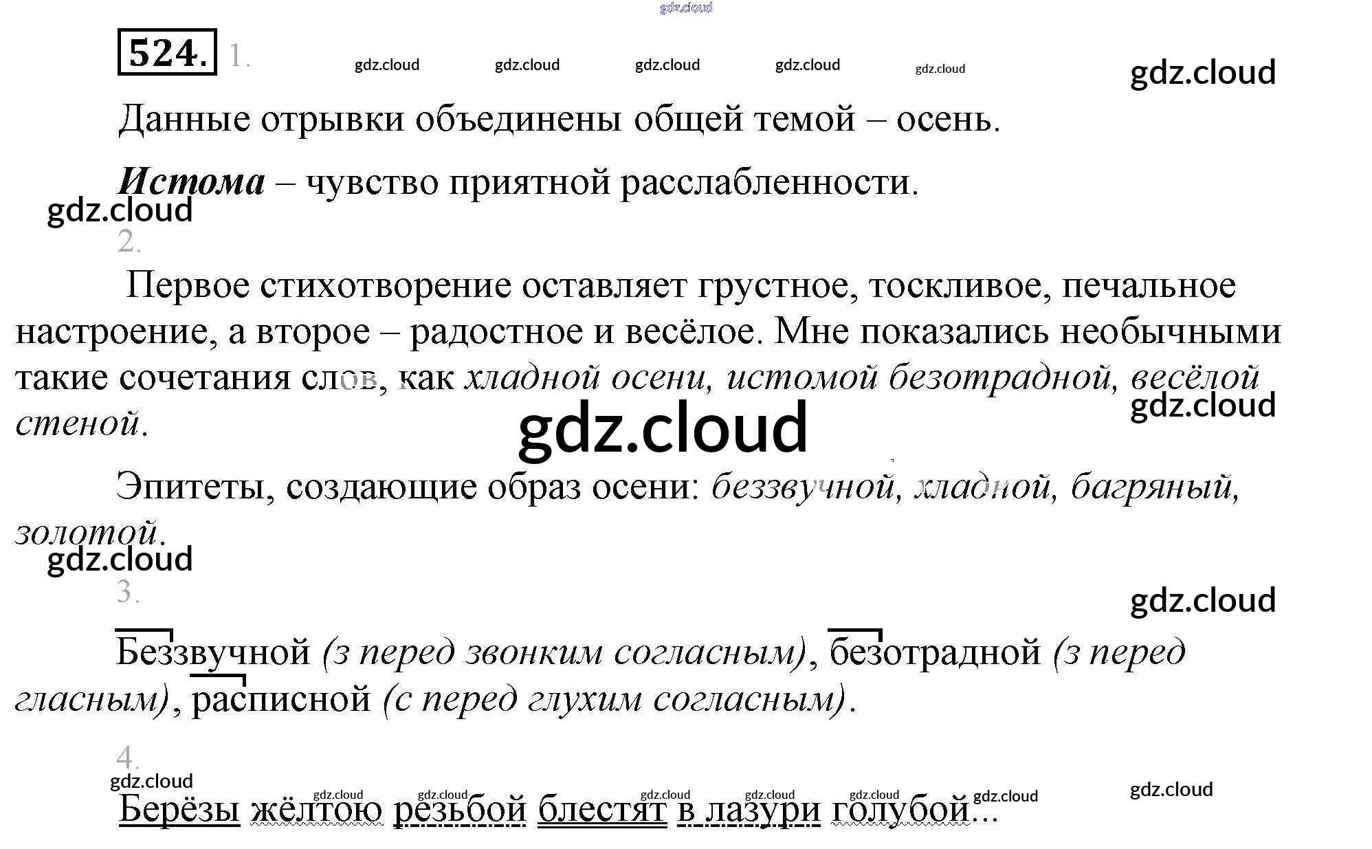 Ответ на задание 524 Учебник Русский язык за 5 (пятый) класс Разумовская, Львова, Капинос, Львов, Богданова, Тронина, Сергеева 2014